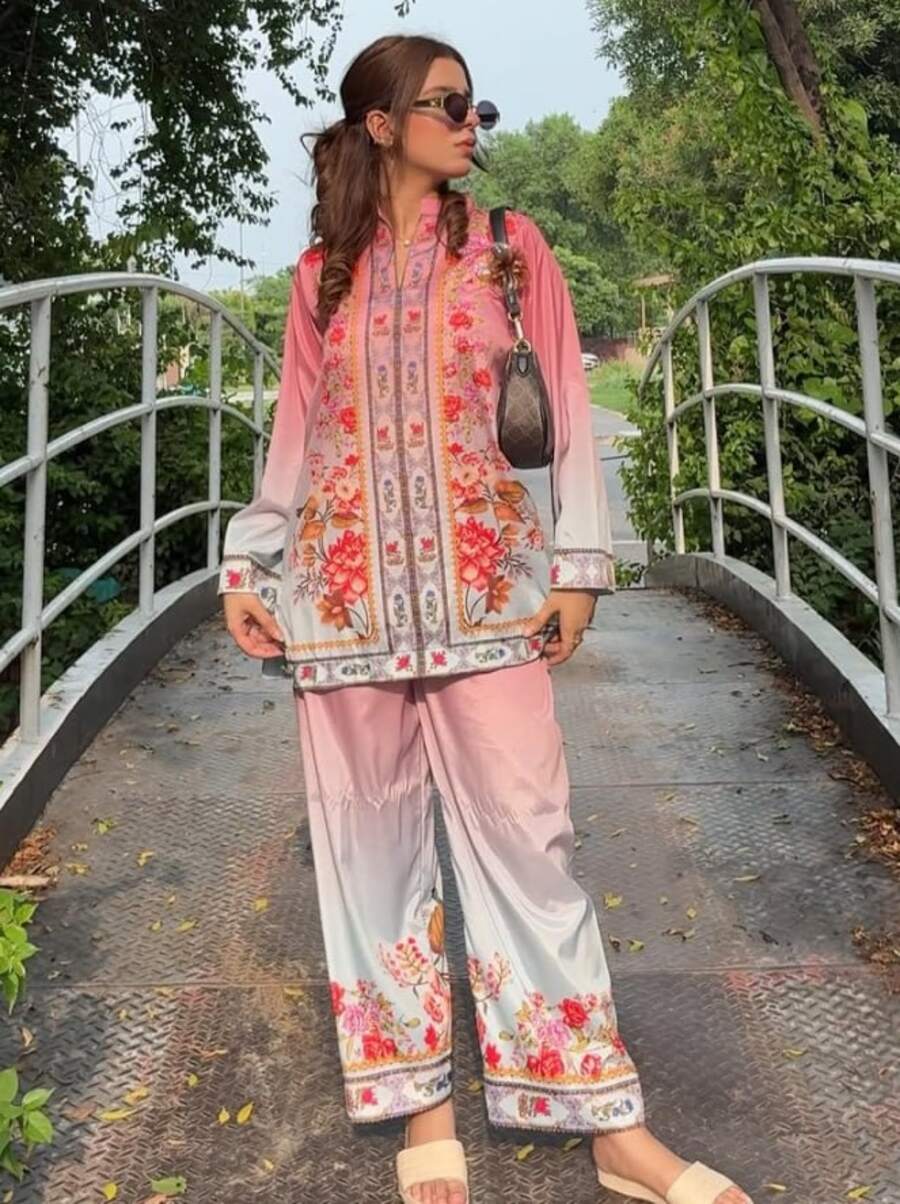 NEW ARRIVAL CREPE DIGITAL PRINT WORK CO-ORD SET PINK