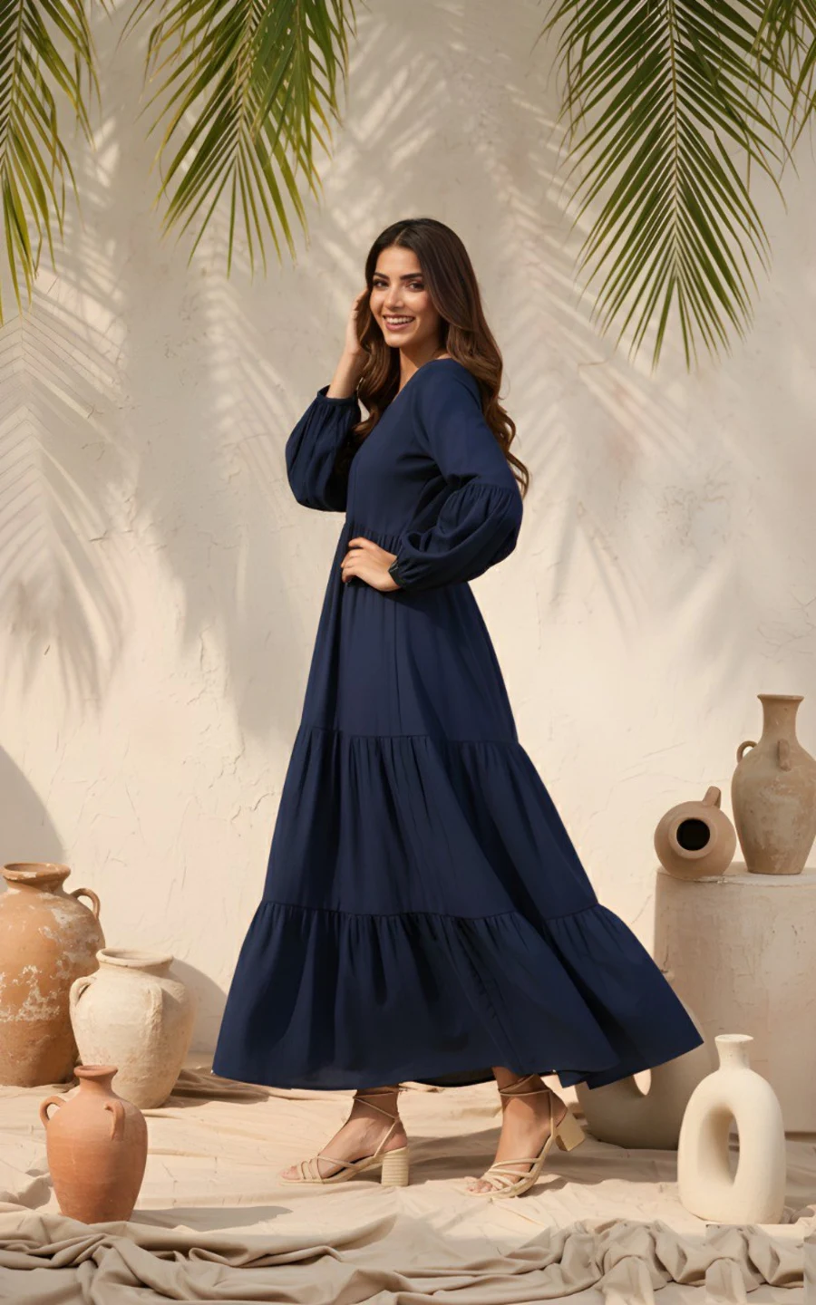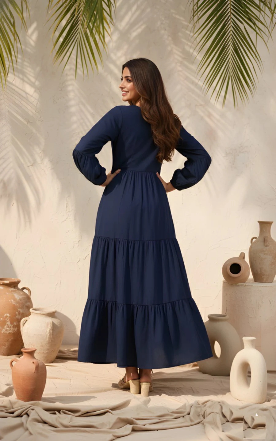 NEW ARRIVAL DELTA SILK 3 LAYERD STITCHED GOWN NAVY BLUE