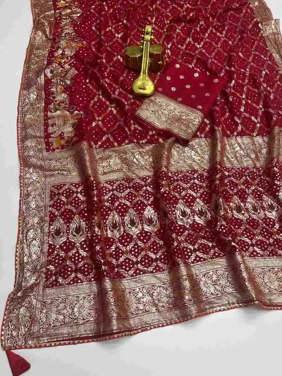 NEW ARRIVAL DOLA SILK ZARI & WEAVING WITH PIPING LACE BORDER WORK SAREE WITH UNSTITCHED BLOUSE RED