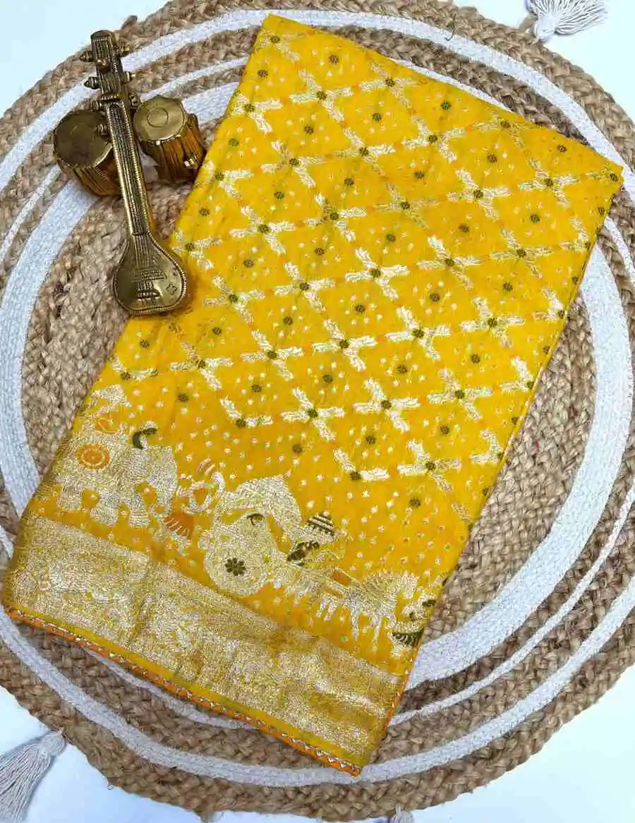 NEW ARRIVAL DOLA SILK ZARI & WEAVING WITH PIPING LACE BORDER WORK SAREE WITH UNSTITCHED BLOUSE YELLOW