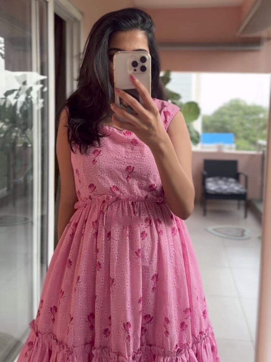 NEW ARRIVAL FOOT BALL COTTON DIGITAL PRINTED ONEPIECE DRESS BABY PINK