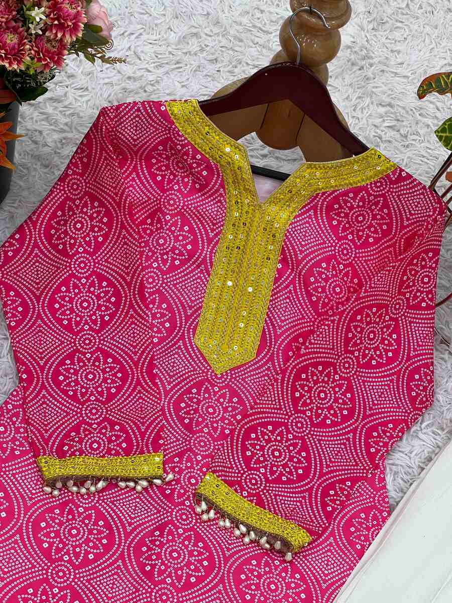 NEW ARRIVAL FRENCH CREPE DIGITAL PRINT WITH EMBROIDERY SEQUENCE WORK TOP PATIYALA PINK
