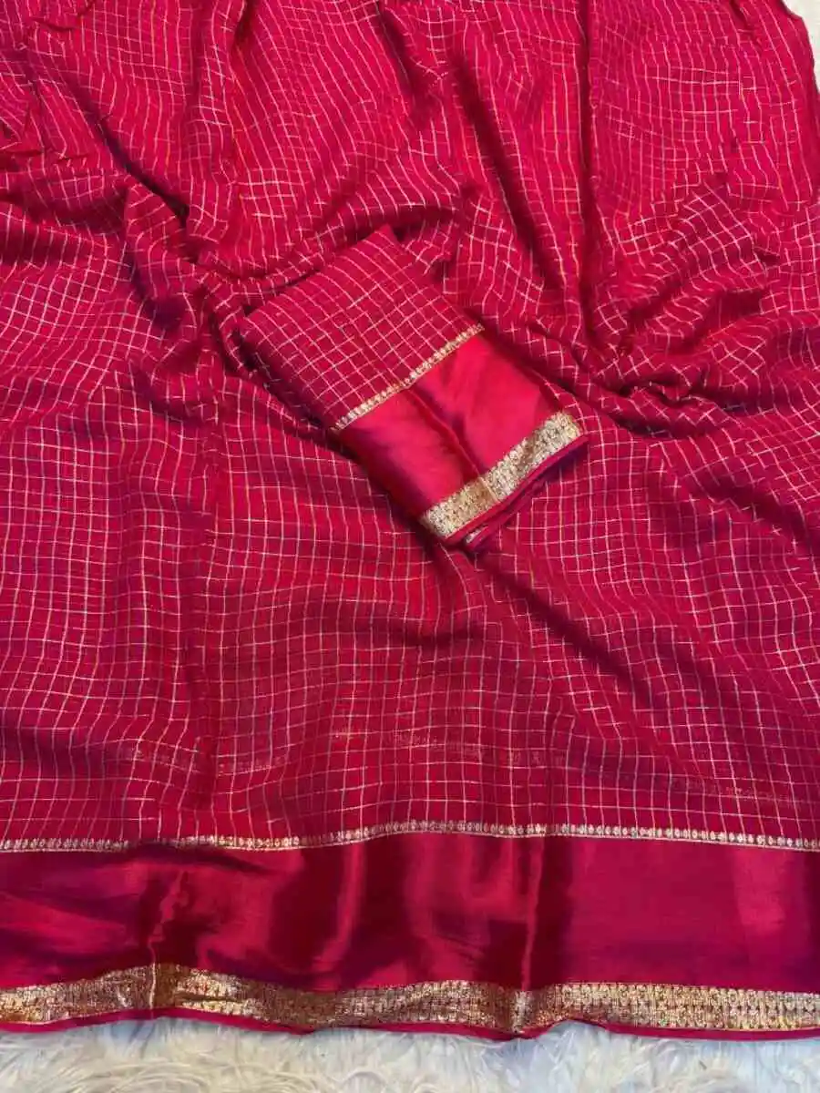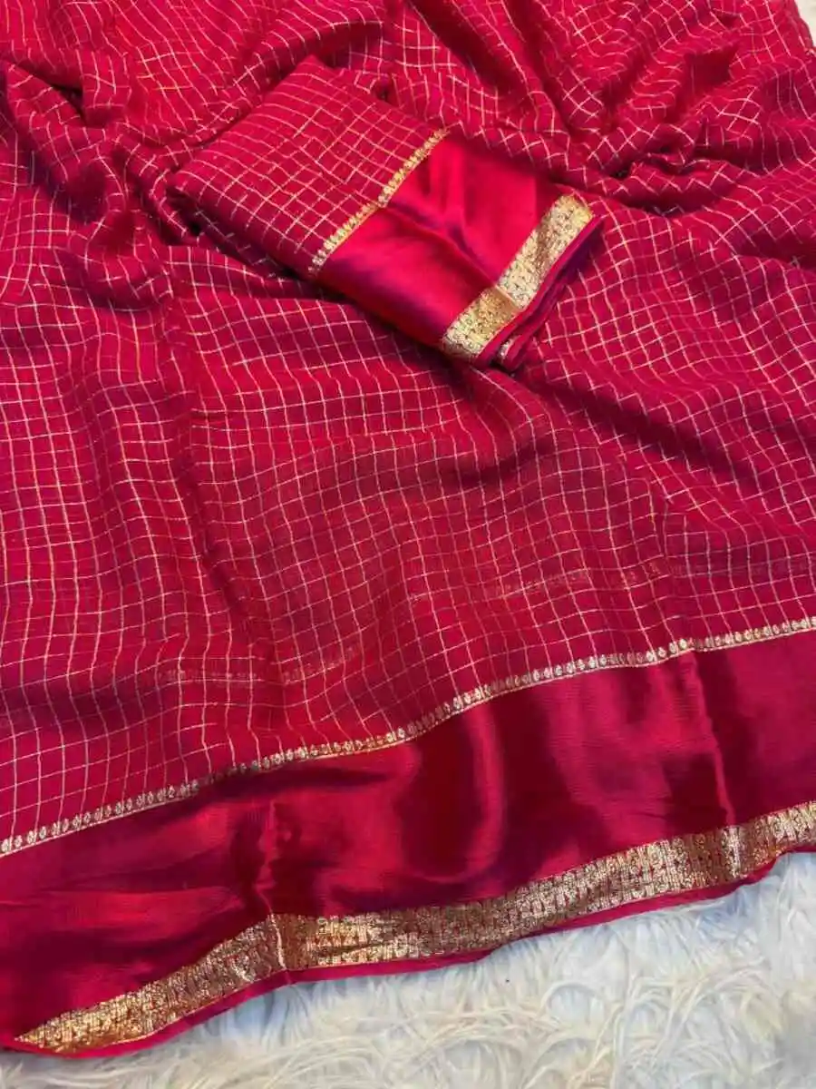 NEW ARRIVAL GEORGETTE CHECKS WEAVING AND STUNNING SATIN PATTA BORDER WORK SAREE WITH UNSTITCHED BLOUSE RANI