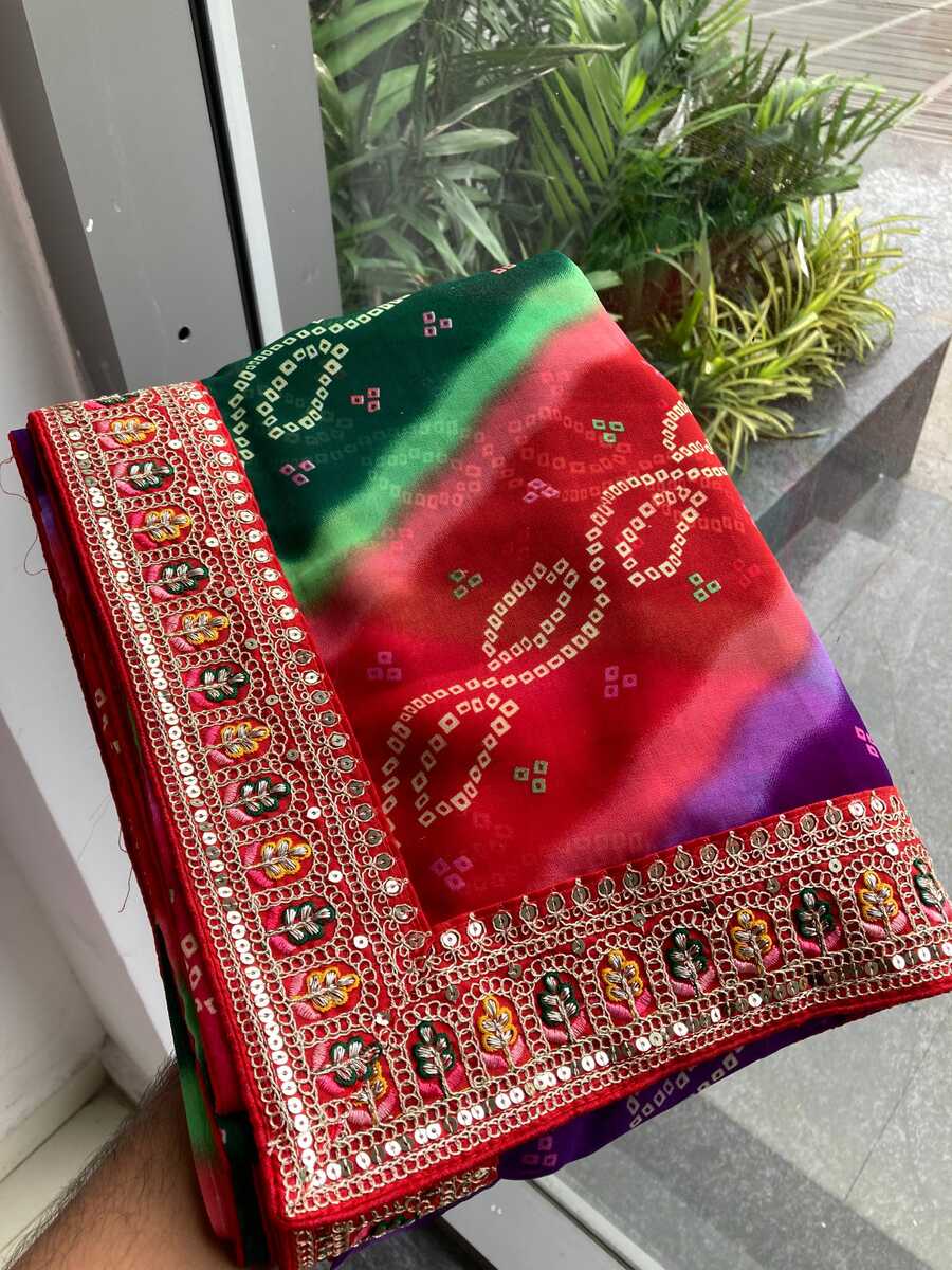 NEW ARRIVAL GEORGETTE DIGITAL PRINT WITH EMBROIDERY WORK BORDER WORK SAREE WITH UNSTITCHED BLOUSE MULTI