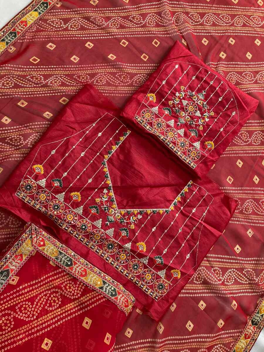 NEW ARRIVAL GEORGETTE DIGITAL PRINT WITH EMBROIDERY WORK BORDER WORK SAREE WITH UNSTITCHED BLOUSE RED