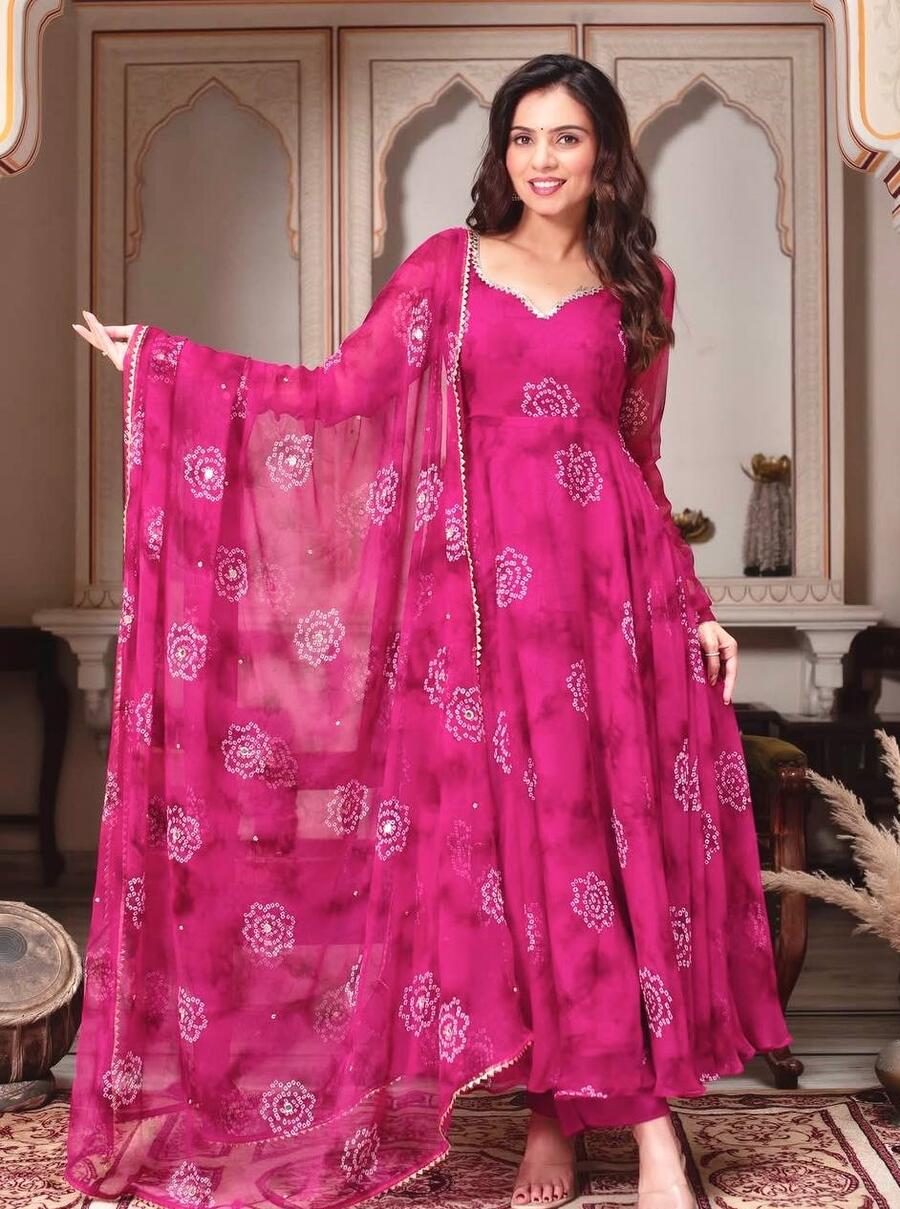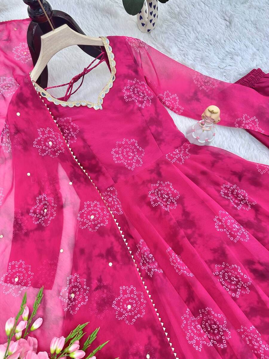 NEW ARRIVAL GEORGETTE DIGITAL PRINTS WITH REAL MIRROR HAND WORK FANCY LACE WORK GOWB BOTTOM WITH DUPATTA PINK