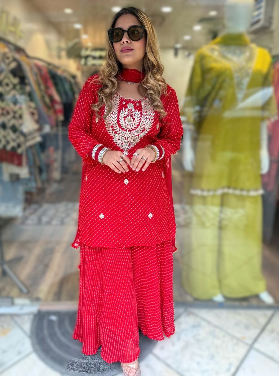 NEW ARRIVAL GEORGETTE EMBROIDERY CODING WORK WITH DIGITAL PRINT WORK TOP PALAZZO WITH DUPATTA RED