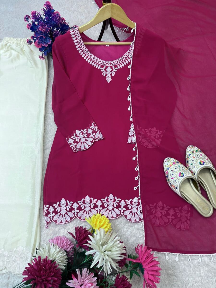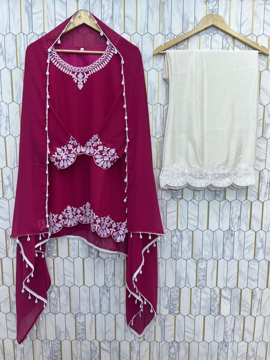NEW ARRIVAL GEORGETTE EMBROIDERY WORK TOP PALAZZO WITH DUPATTA PINK