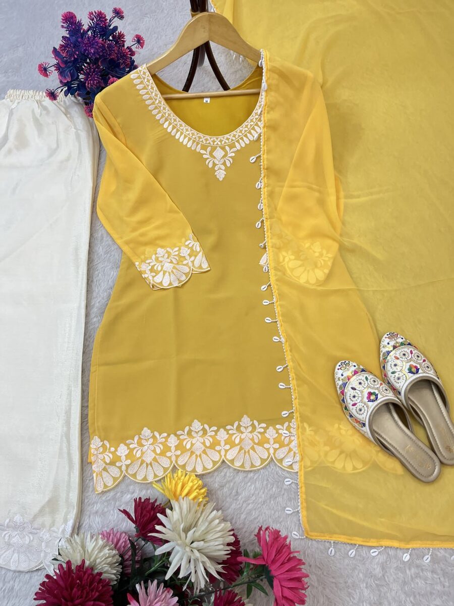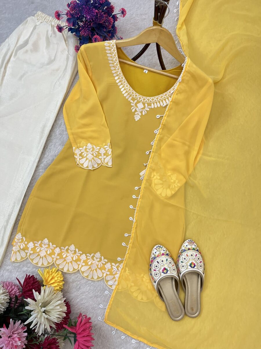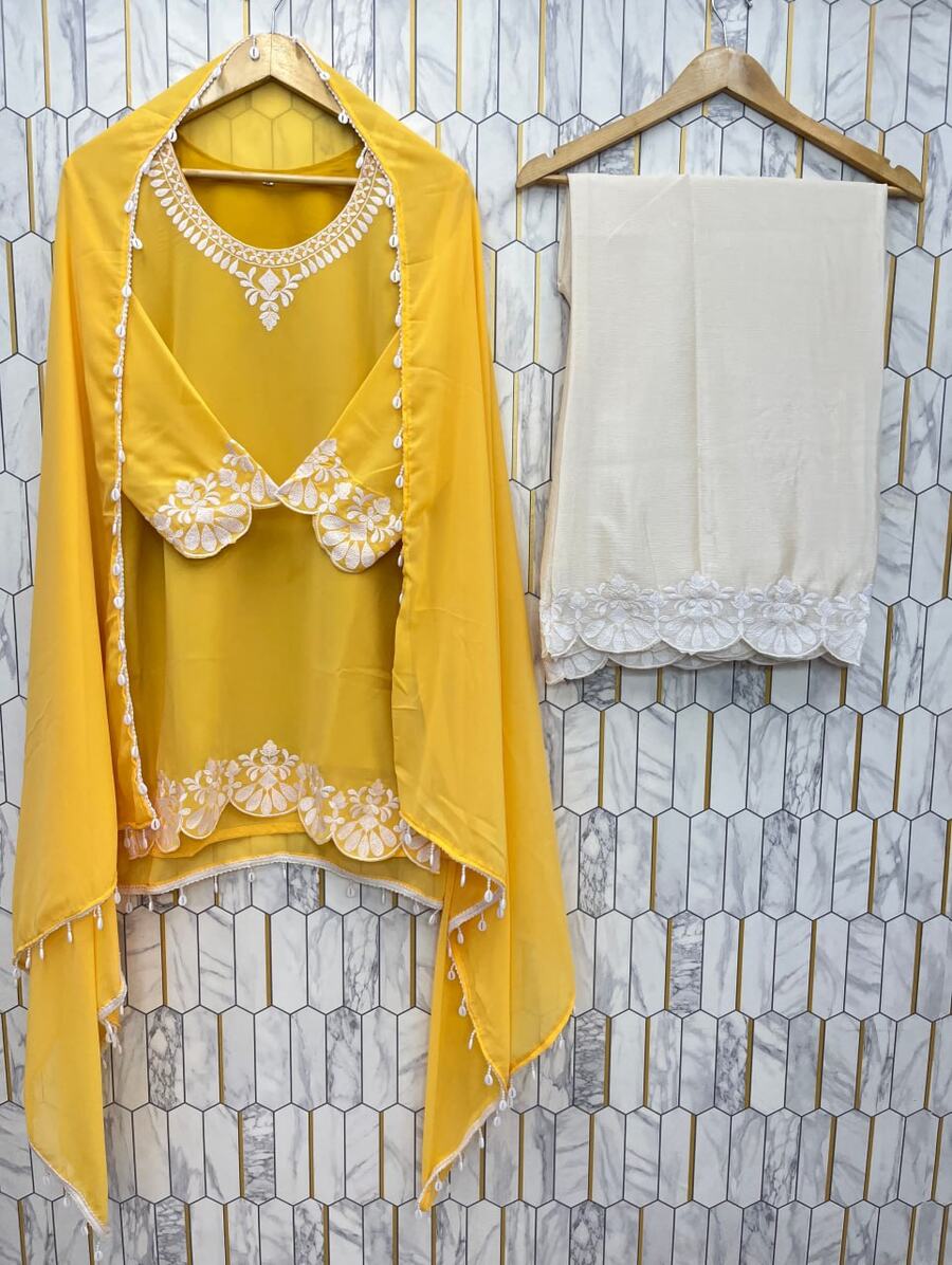 NEW ARRIVAL GEORGETTE EMBROIDERY WORK TOP PALAZZO WITH DUPATTA YELLOW