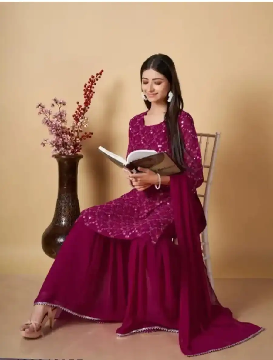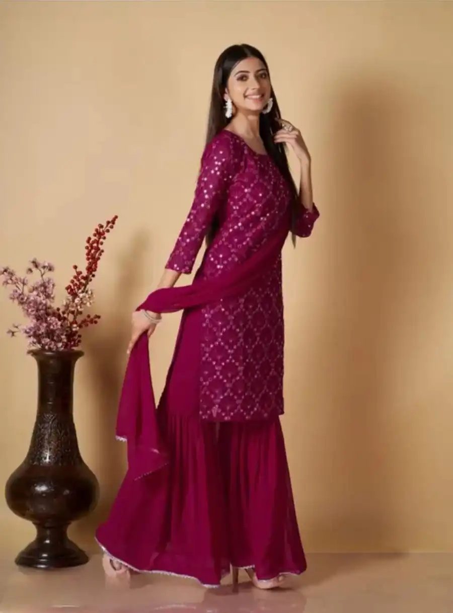 NEW ARRIVAL GEORGETTE EMBROIDERY WORK TOP SHARARA WITH DUPATTA PINK