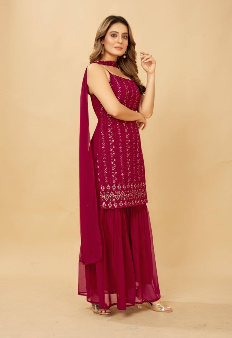 NEW ARRIVAL GEORGETTE SEQUENCE EMBROIDERY WORK TOP PALAZZO WITH DUPATTA PINK