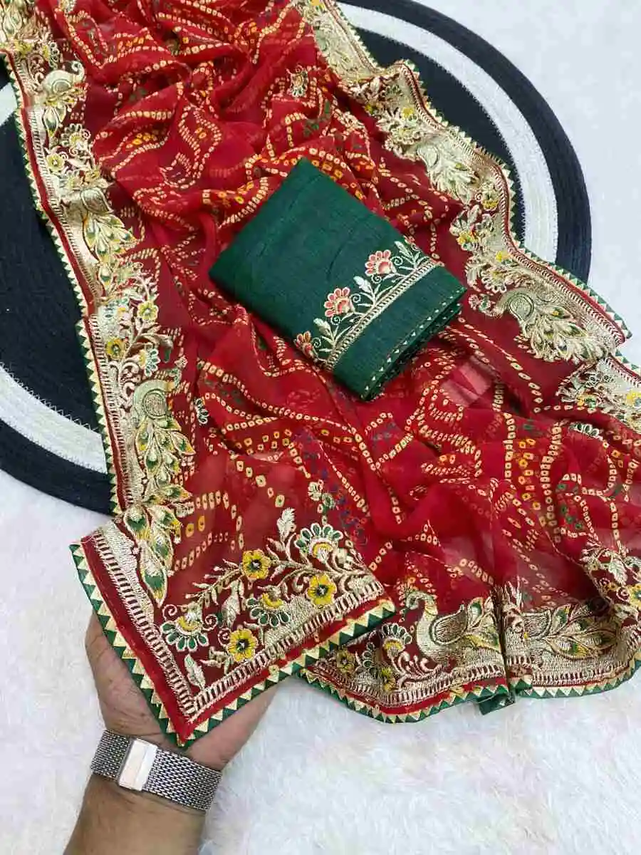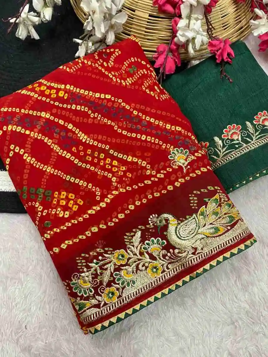 NEW ARRIVAL GEORGETTE ZARI EMBROIDERY WORK BORDER WITH LACE WORK SAREE WITH UNSTITCHED BLOUSE RED