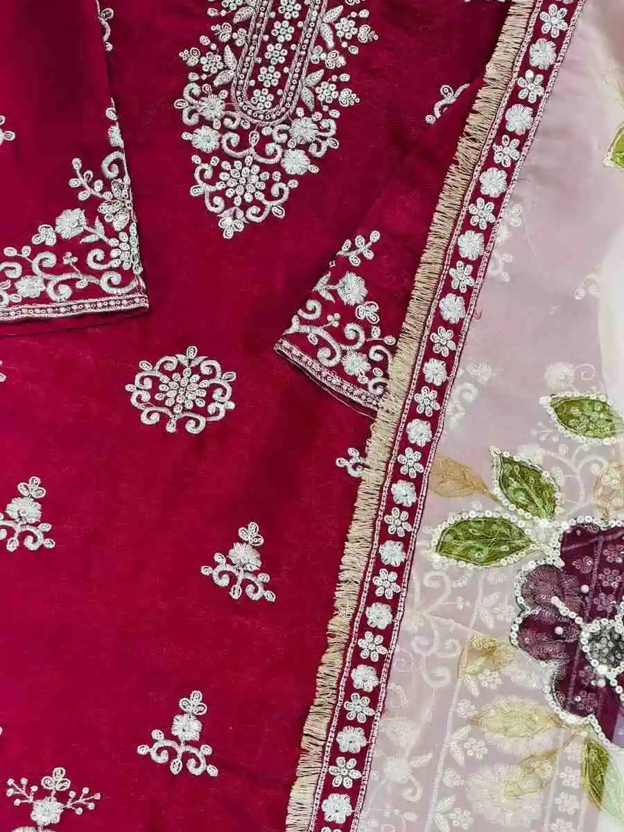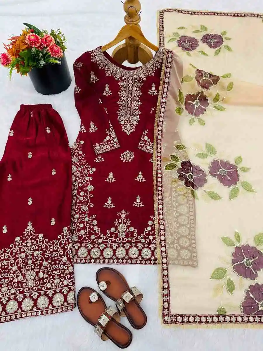 NEW ARRIVAL GMY SILK EMBROIDERY SEQUENCE WORK TOP PALAZZO WITH DUPATTA RED