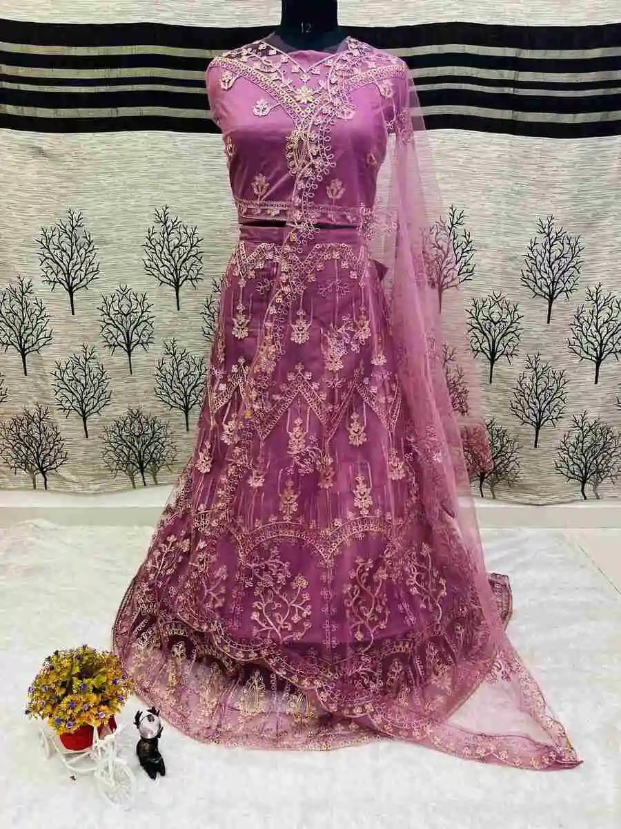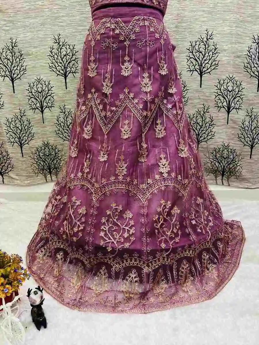 NEW ARRIVAL HEAVY NET CHAIN WORK LEHENGA CHOLI WITH DUPATTA PINK
