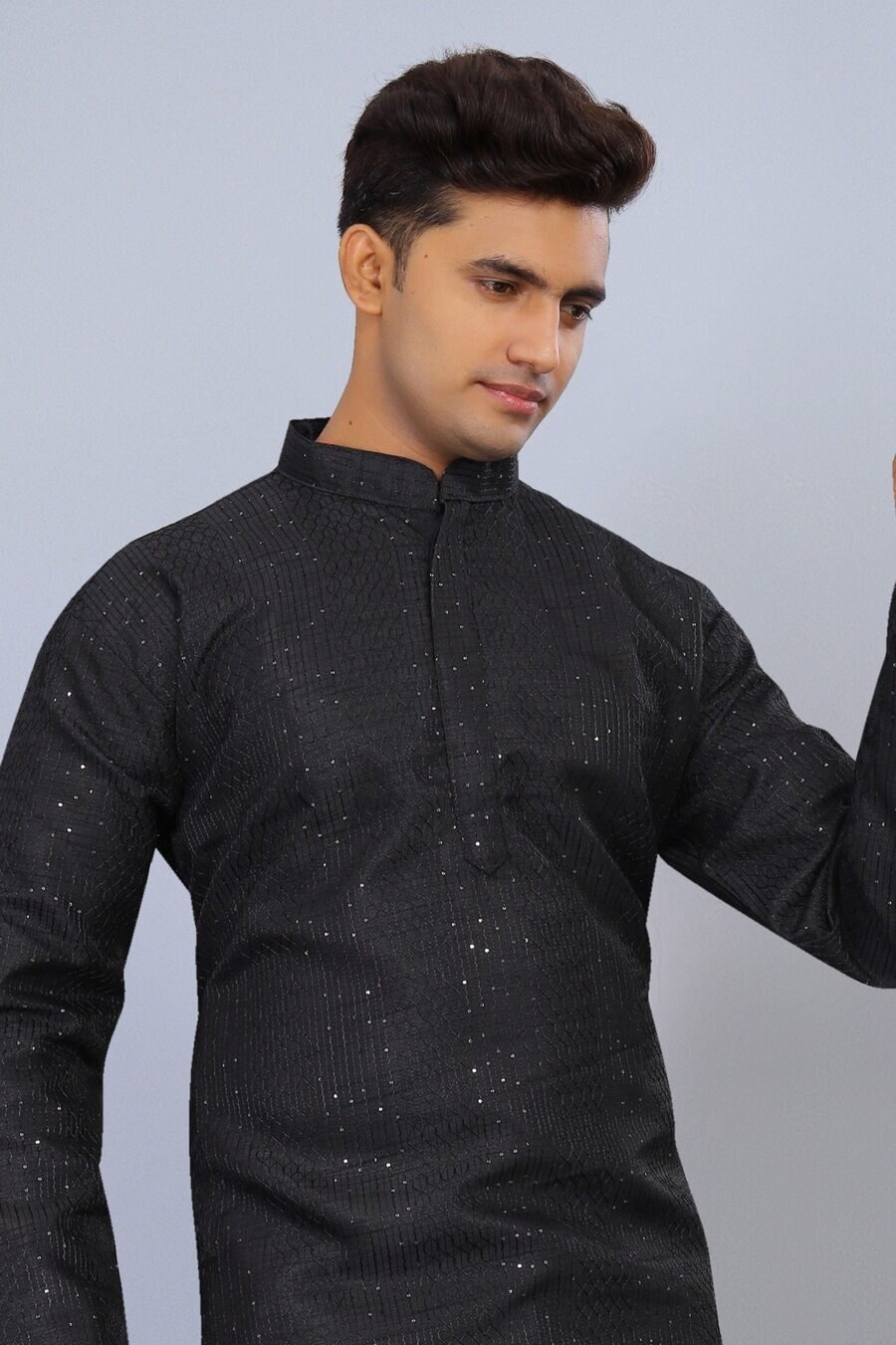 NEW ARRIVAL IMPORTED THREAD SEQUENCE WORK MEN’S KURTA PAYAJAMA BLACK