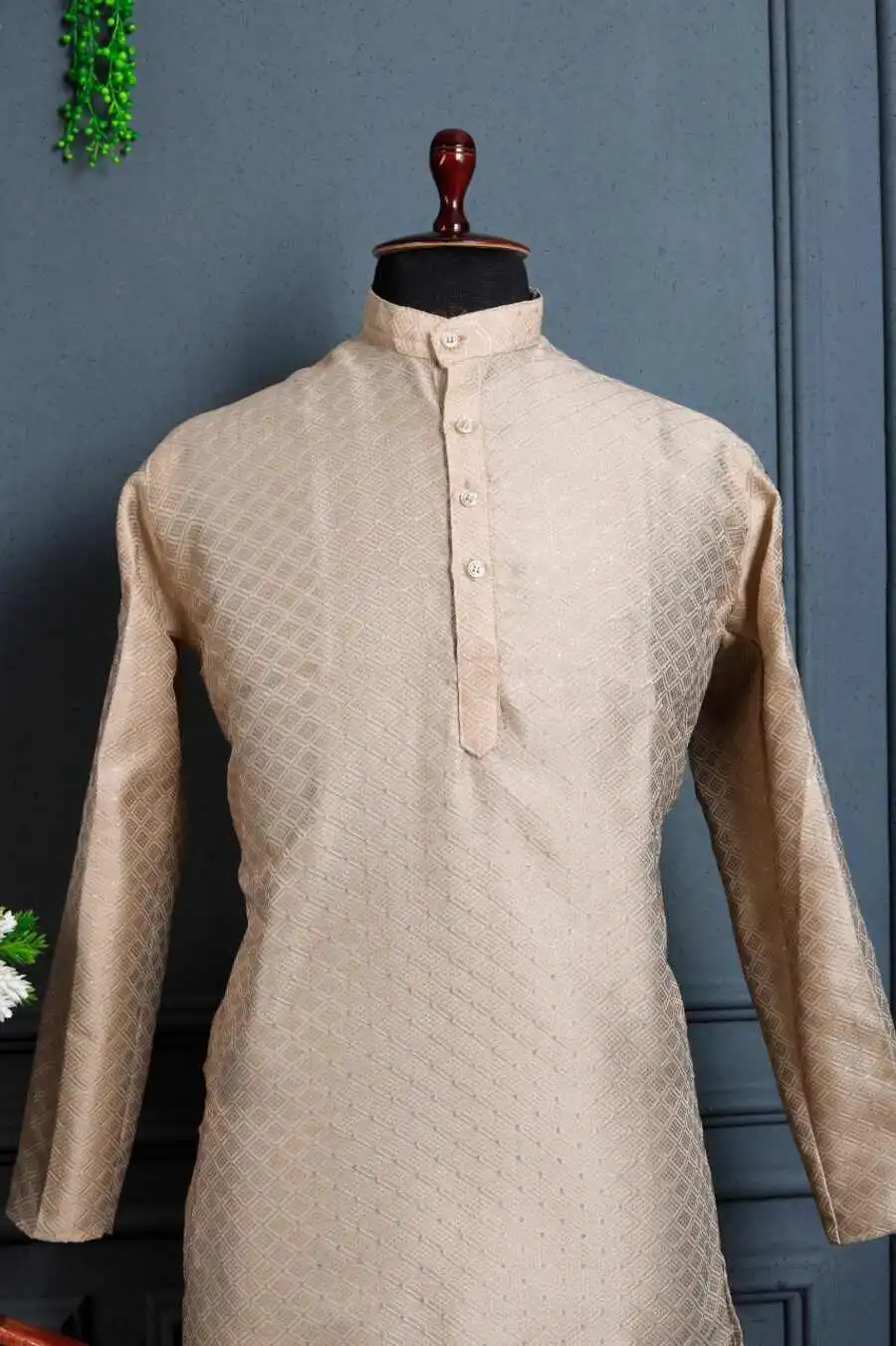NEW ARRIVAL JACQUARD PRINTED WORK MEN’S KURTA PAYJAMA CREAM