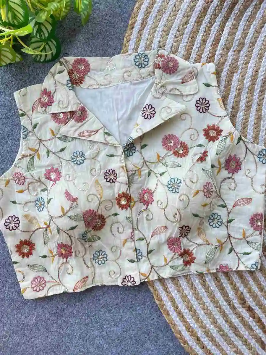 NEW ARRIVAL KHADI COTTON EMBROIDERY WORK STITCHED BLOUSE OFF WHITE AND BROWN