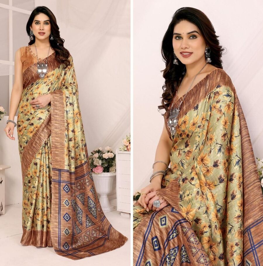 NEW ARRIVAL KHADI DIGITAL PRINTED SAREE WITH UNSTITCHED BLOUSE MINT