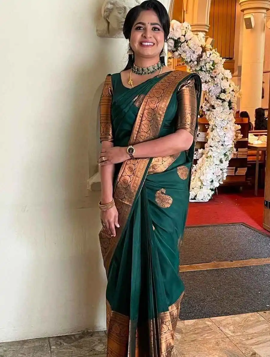NEW ARRIVAL LICHI SILK RICH PALLU & JACQUARD WORK SAREE WITH UNSTITCHED BLOUSE GREEN