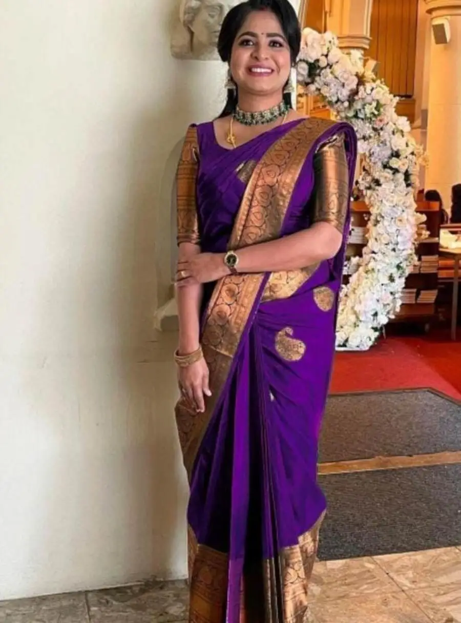 NEW ARRIVAL LICHI SILK RICH PALLU & JACQUARD WORK SAREE WITH UNSTITCHED BLOUSE PURPLE