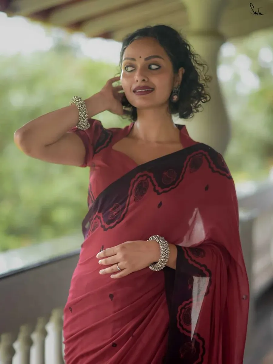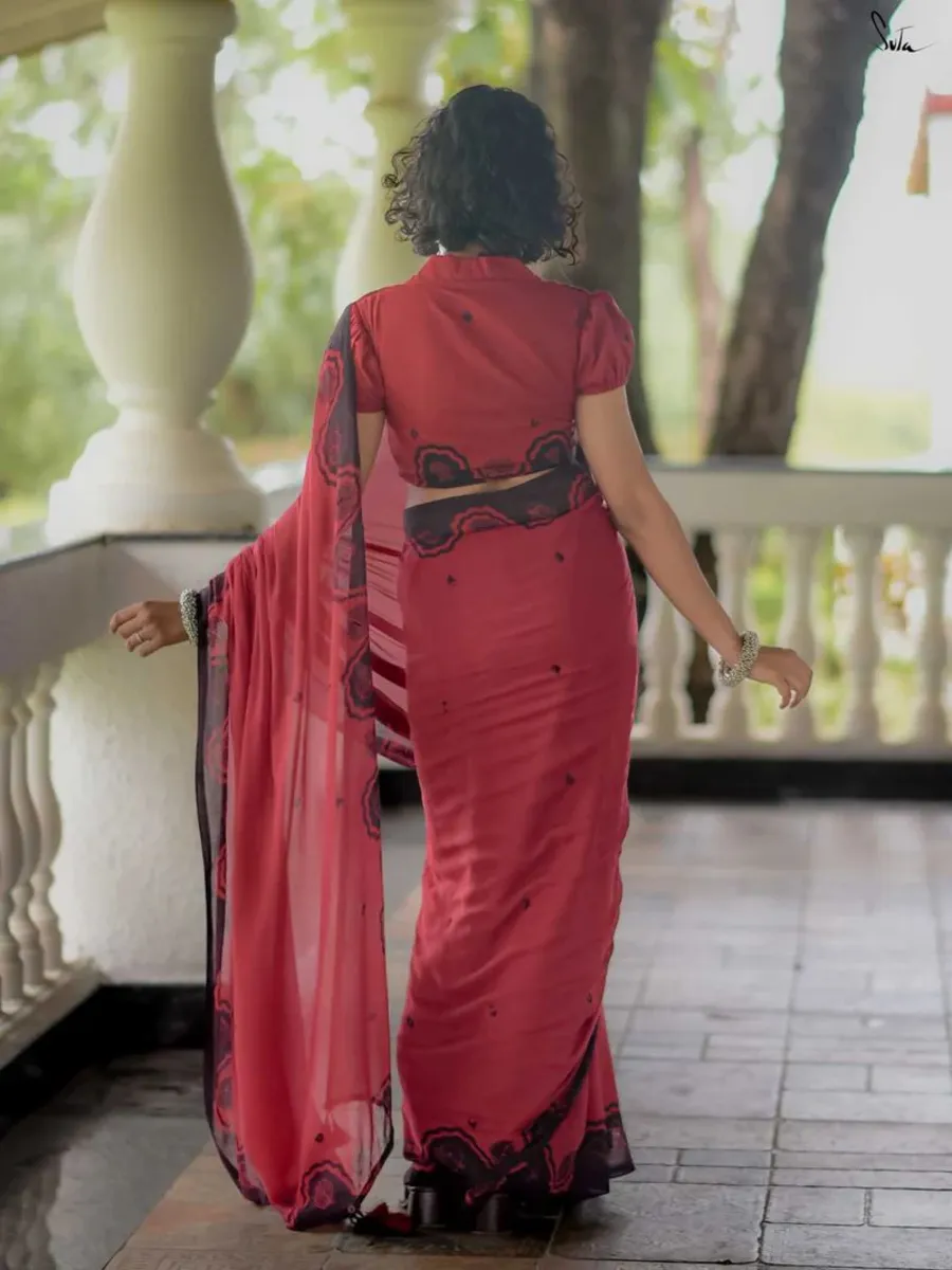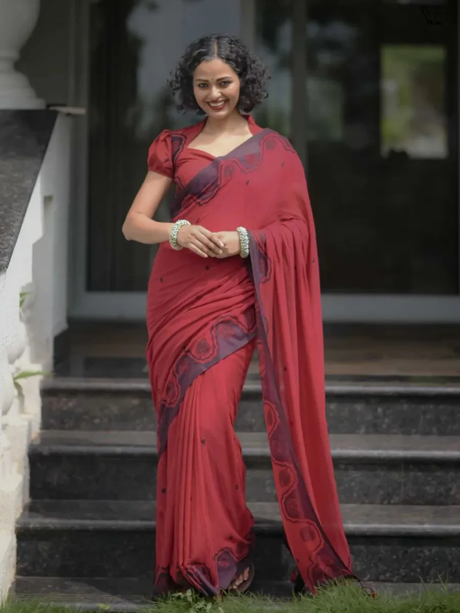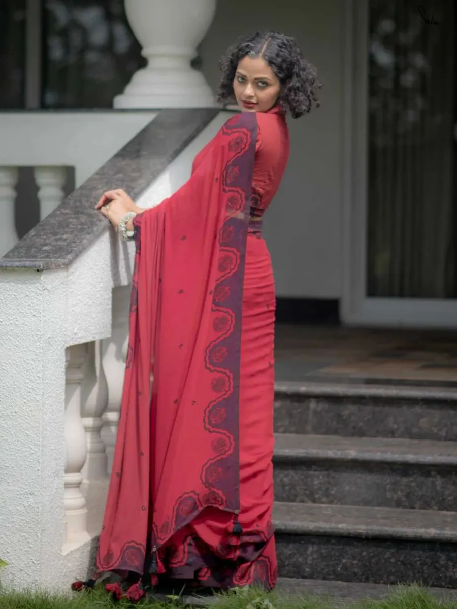 NEW ARRIVAL LINEN COTTON DIGITAL PRINTED WORK SAREE WITH UNSTITCHED BLOUSE RED