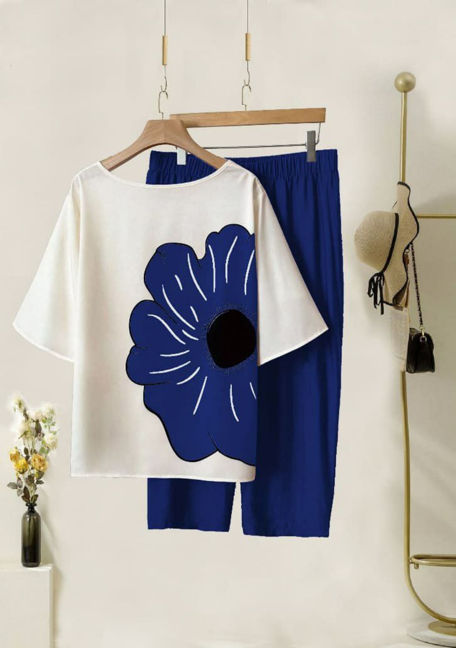NEW ARRIVAL LYCRA DIGITAL PRINT WORK TOP PANT SET NAVY BLUE