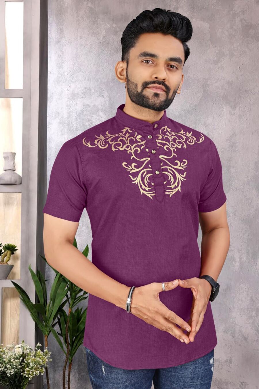 NEW ARRIVAL MAGIC COTTON FOIL PRINT WORK MEN’S SHIRT PURPLE