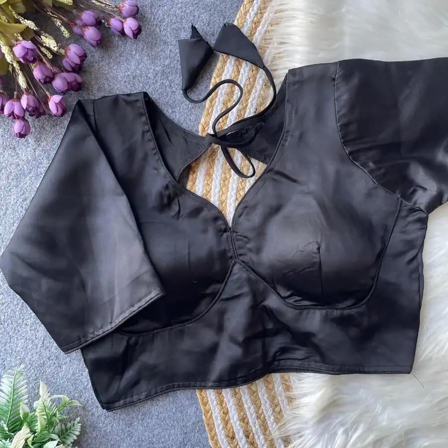 NEW ARRIVAL MALAI SATIN PLAIN READY TO WEAR BLOUSE BLACK