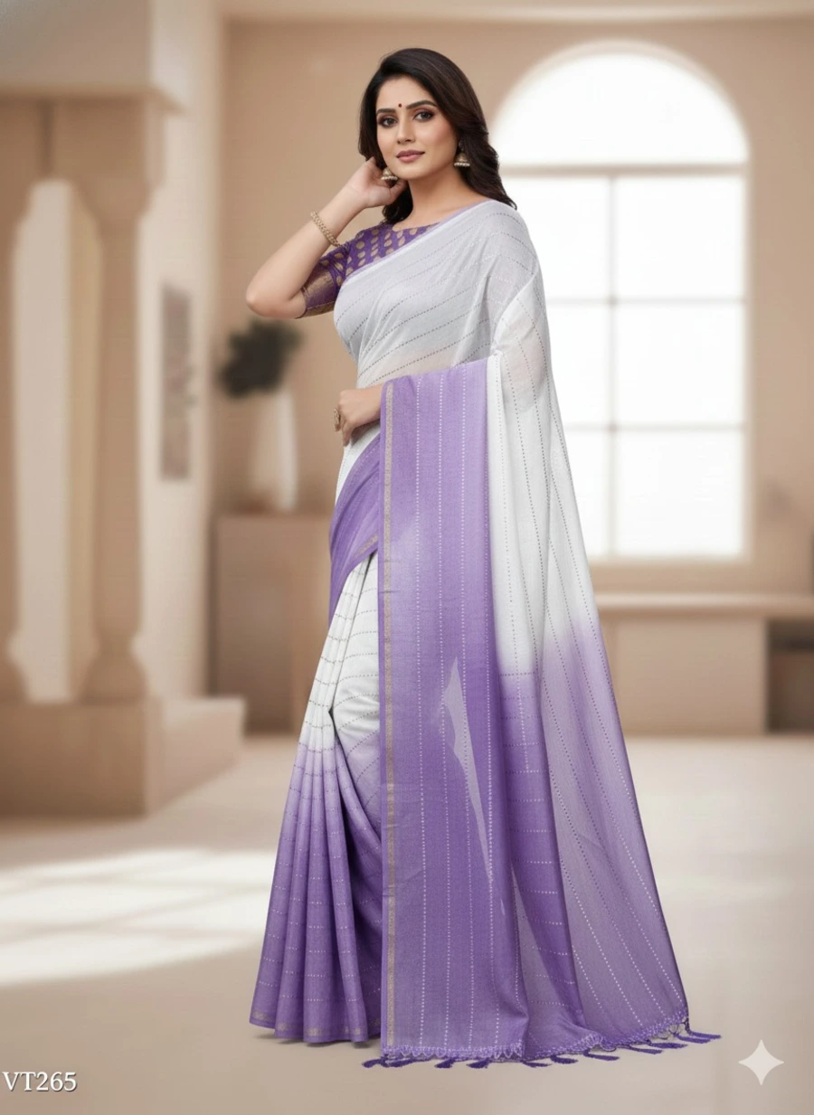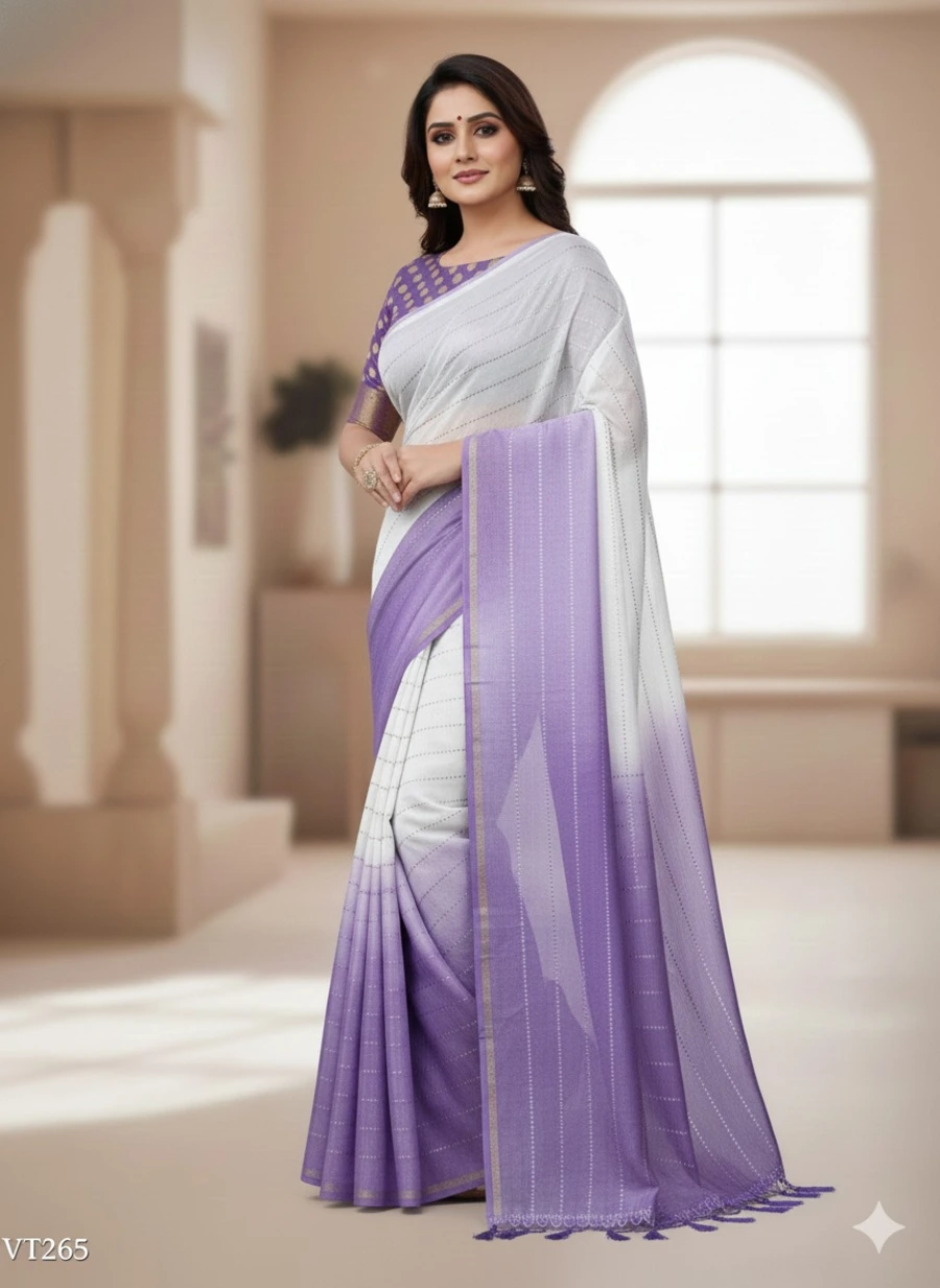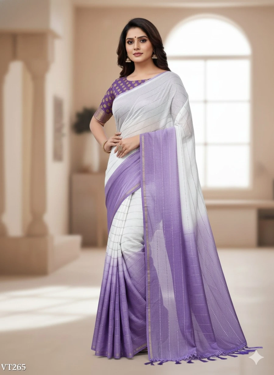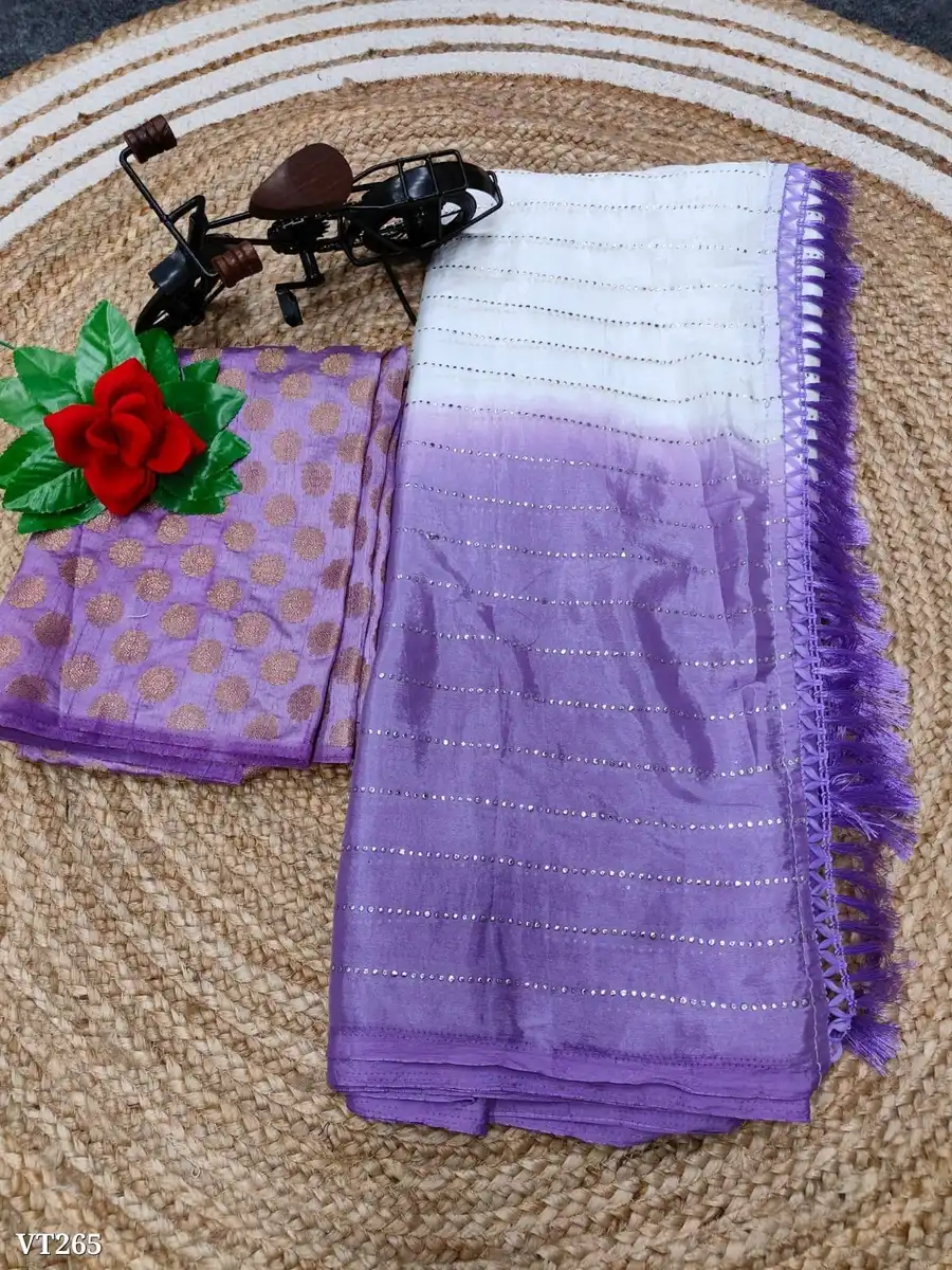 NEW ARRIVAL NYLON CHINON SILK MUKESH WORK SAREE WITH UNSTITCHED BLOUSE PURPLE