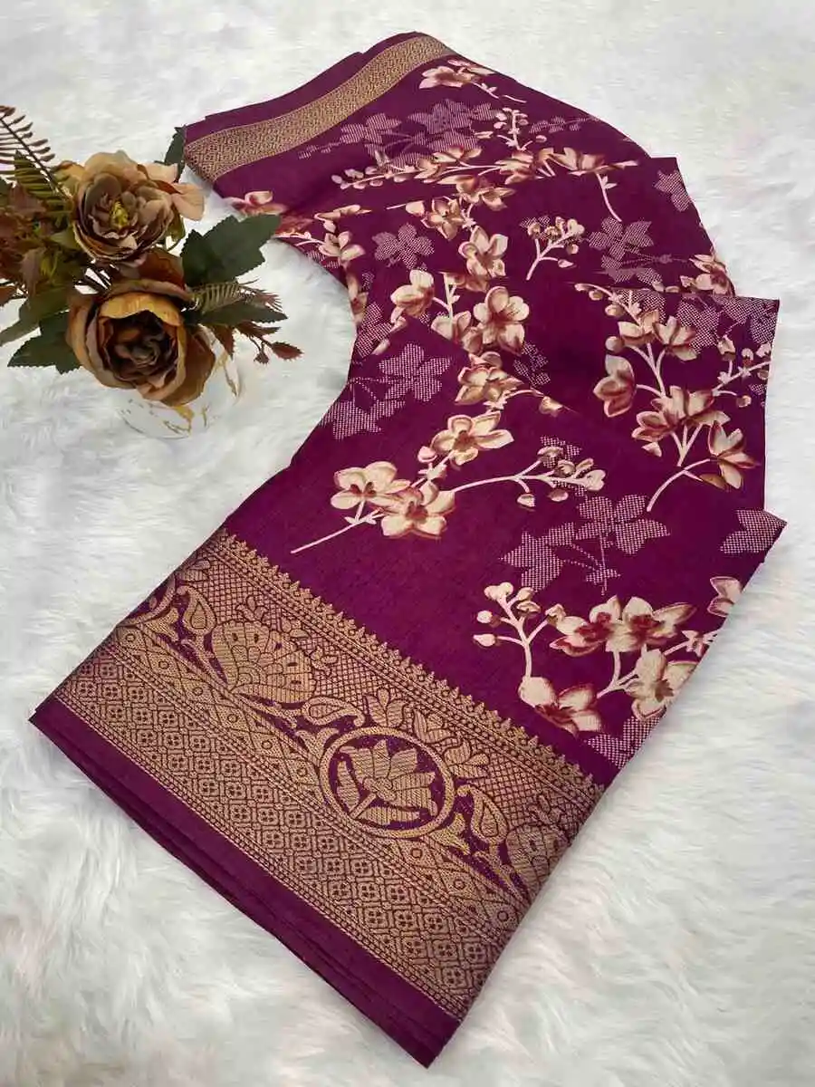 NEW ARRIVAL OLA SILK PRINT WITH JACQUARD BORDER WORK SAREE WITH UNSTITCHED BLOUSE WINE