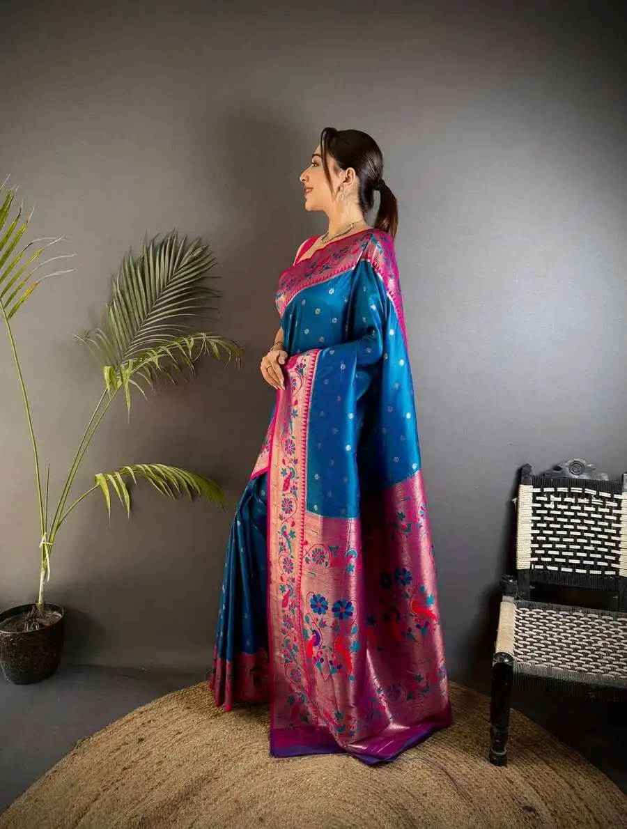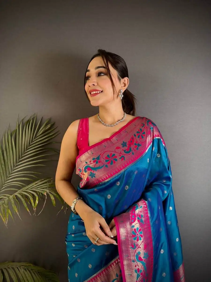 NEW ARRIVAL PAITHANI SILK ZARI WEAVING WORK SAREE WITH UNSTITCHED BLOUSE TEAL