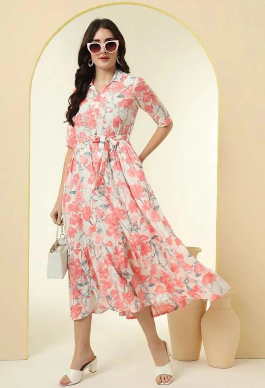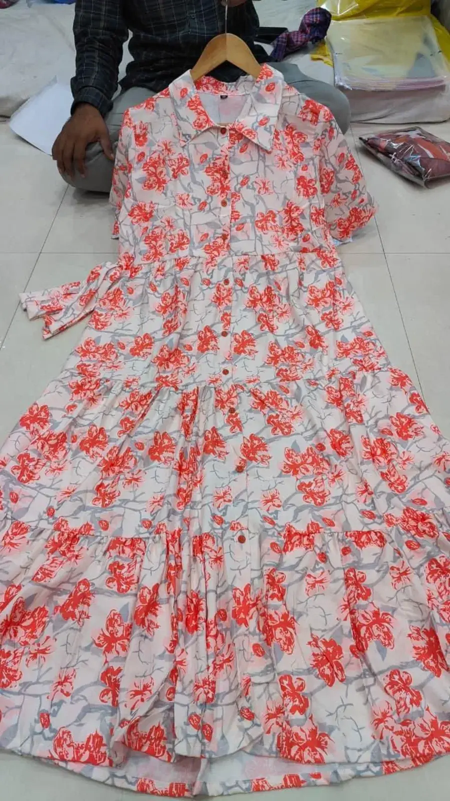 NEW ARRIVAL POLY RAYON DIGITAL PRINT WORK ONE PIECE ORANGE