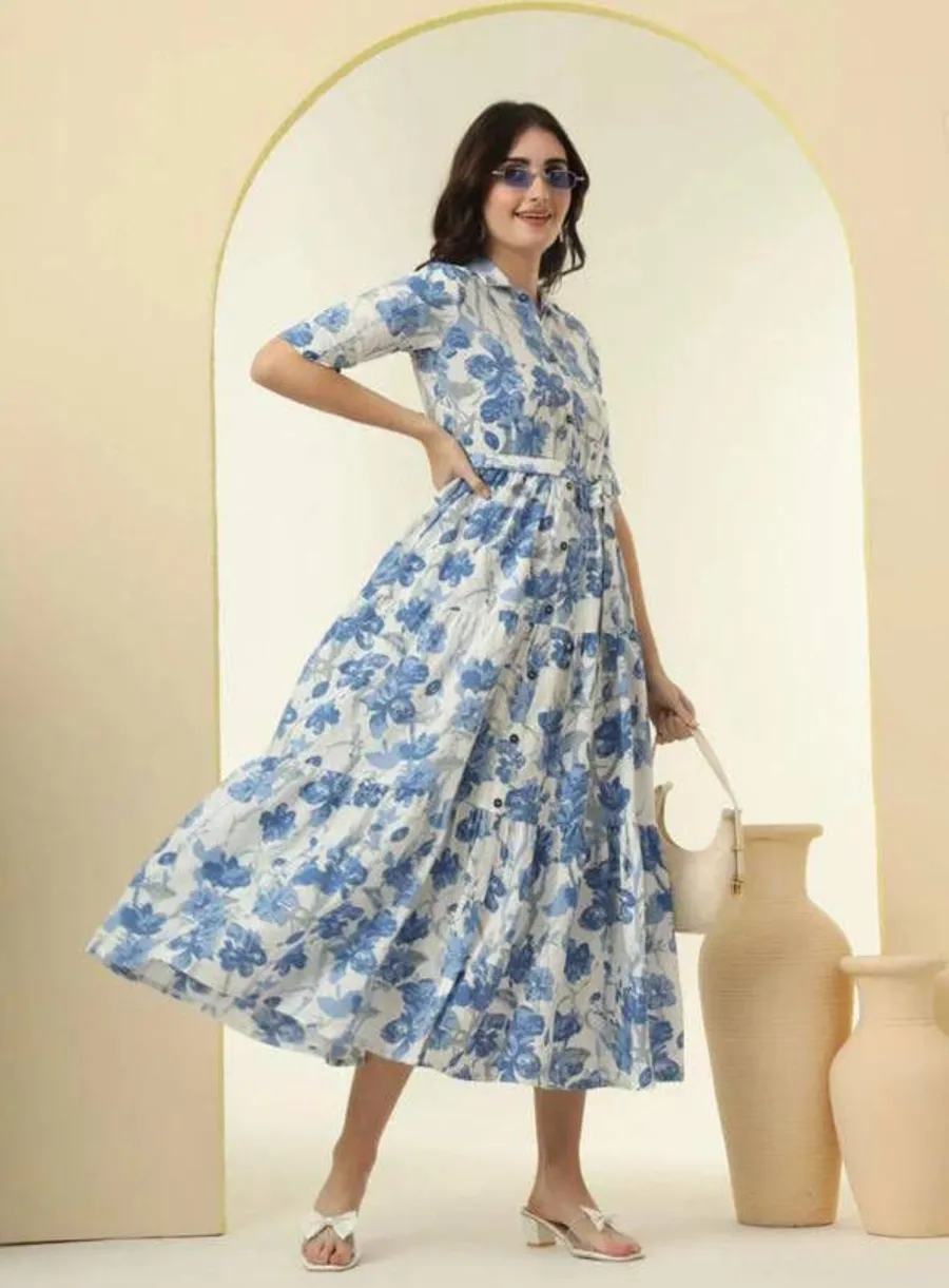 NEW ARRIVAL POLY RAYON DIGITAL PRINT WORK ONE PIECE SKY
