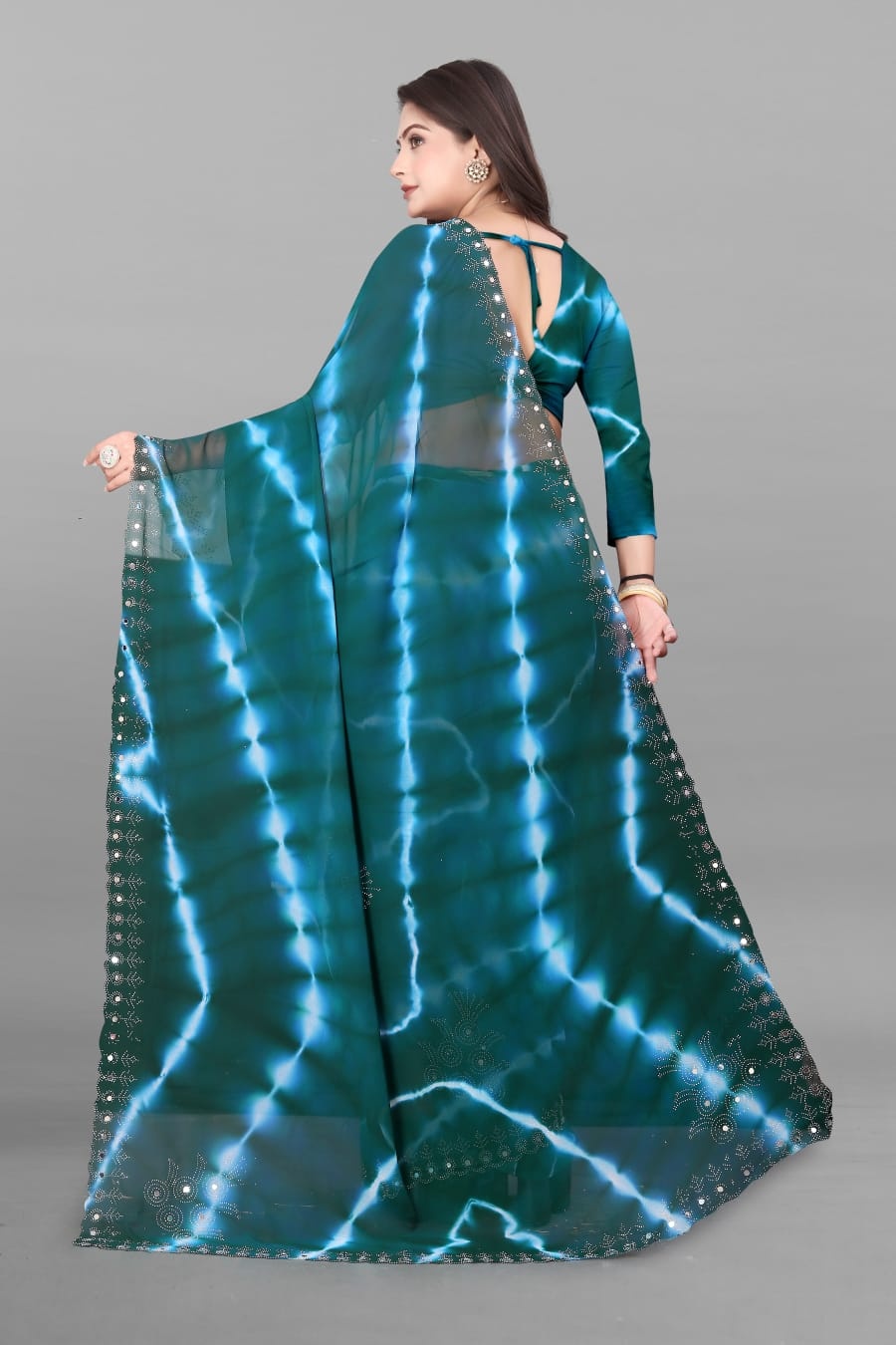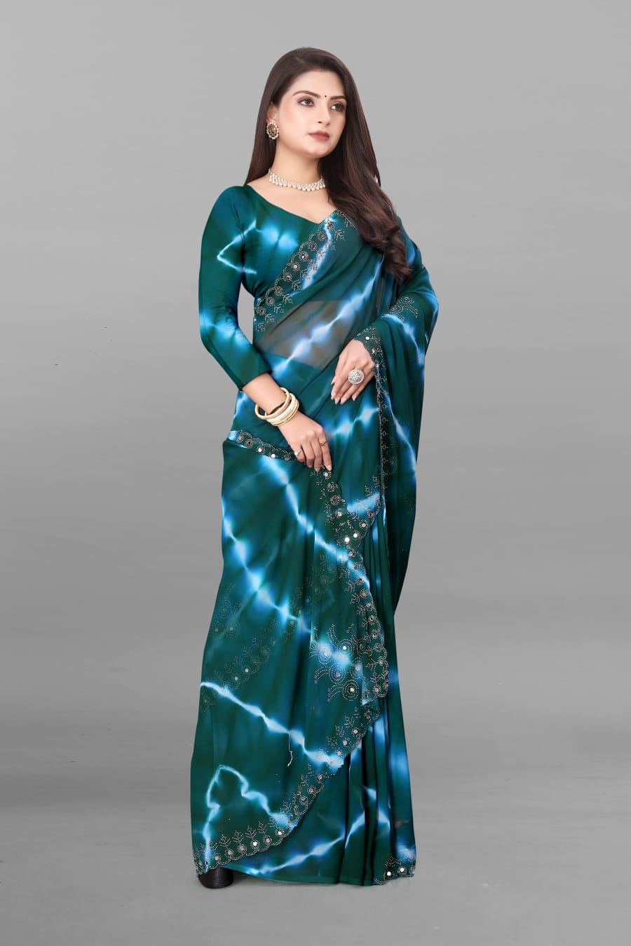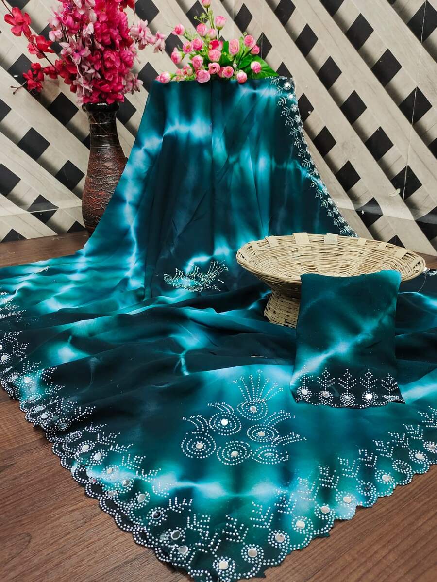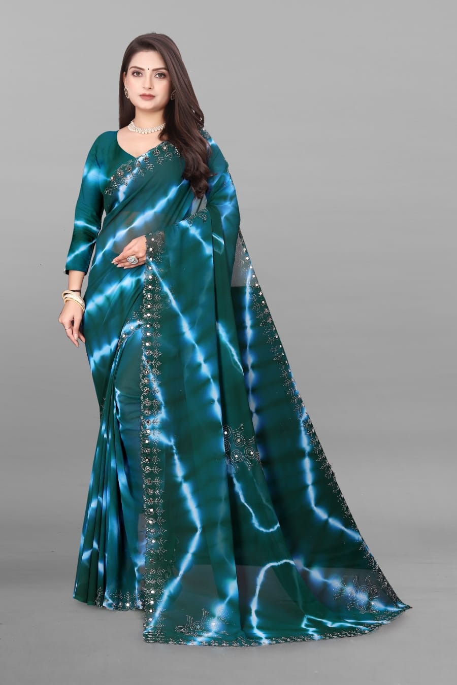 NEW ARRIVAL PURE VETLESS HOT FIX WORK SAREE WITH UNSTITCHED BLOUSE RAMA
