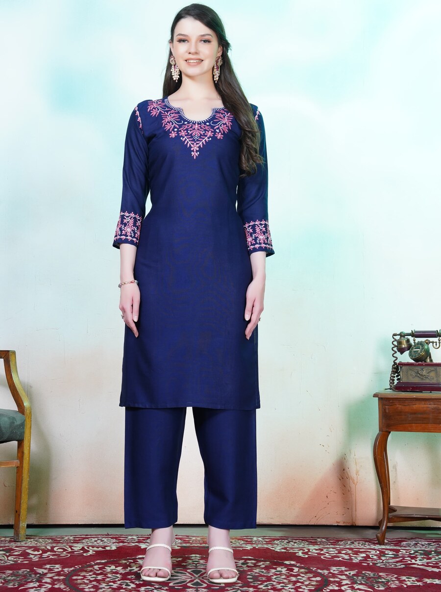 NEW ARRIVAL RAYON CHIKANKARI EMBROIDERY WORK TOP BOTTOM SET BLUE
