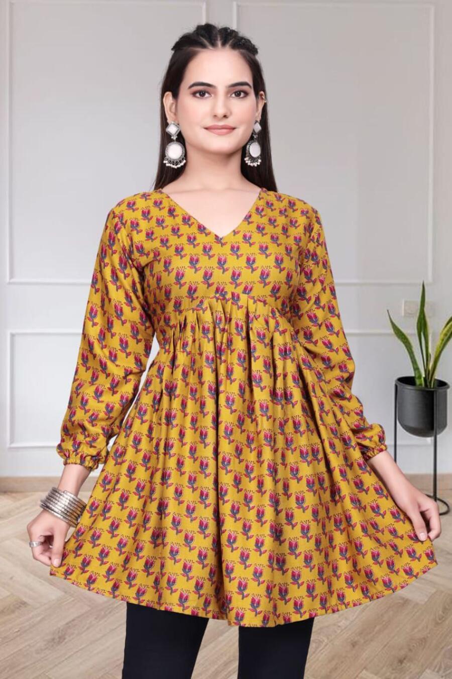 NEW ARRIVAL RAYON DIGITAL PRINT WORK ONLY TOP YELLOW