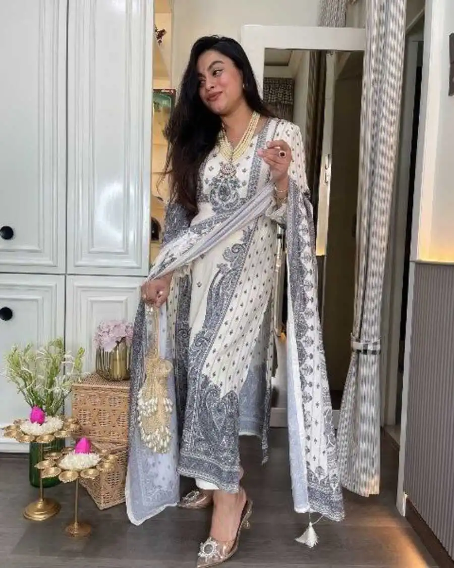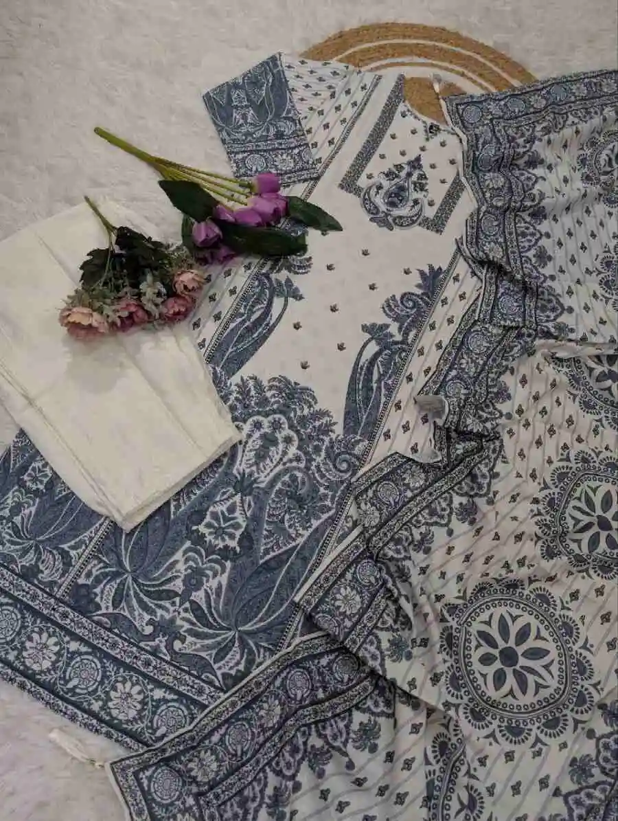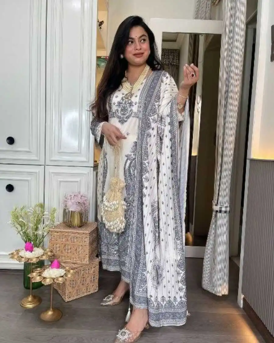 NEW ARRIVAL RAYON DIGITAL PRINT WORK TOP BOTTOM WITH DUPATTA CREAM