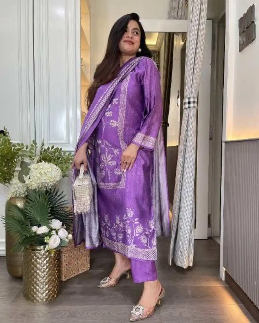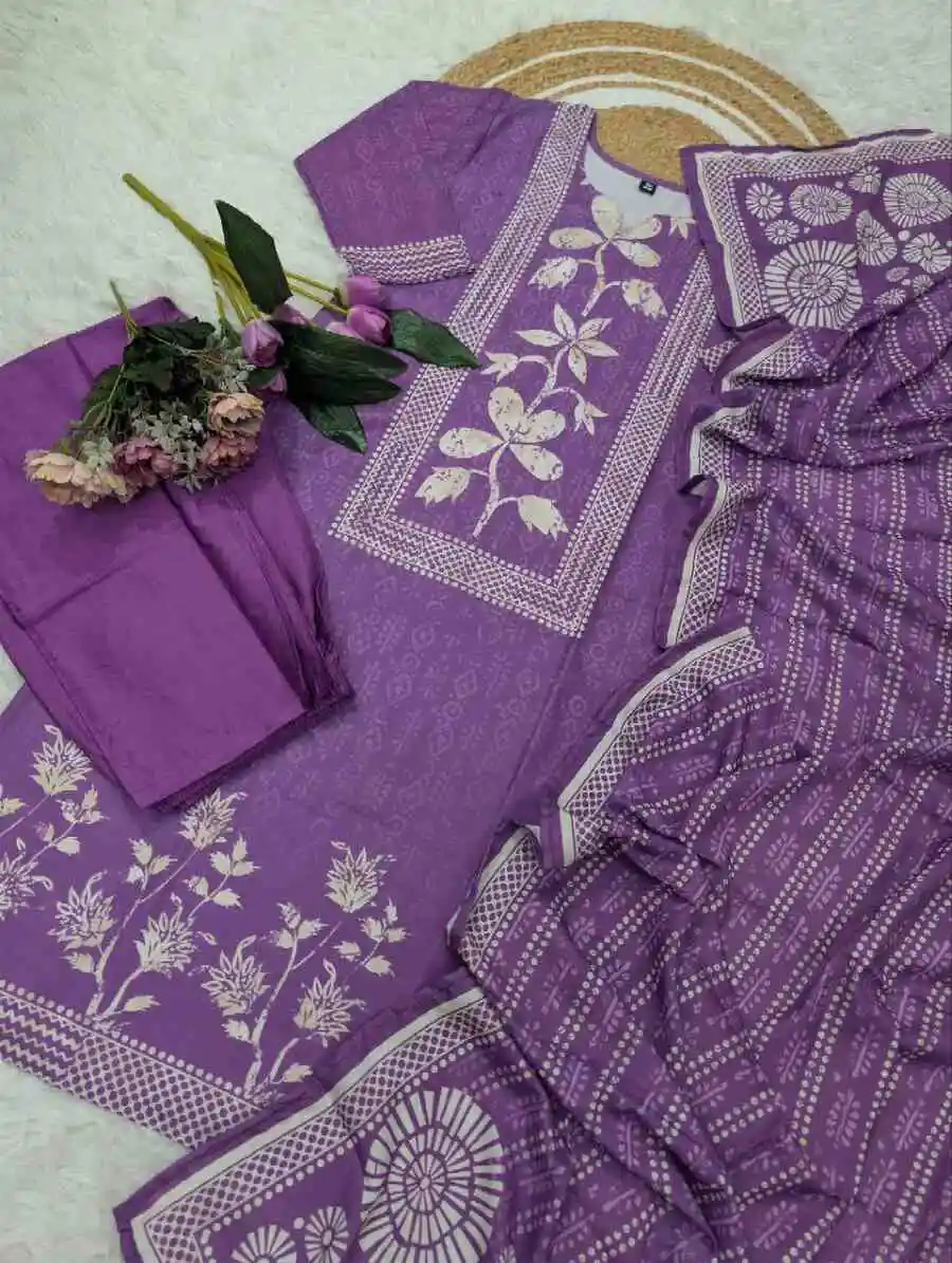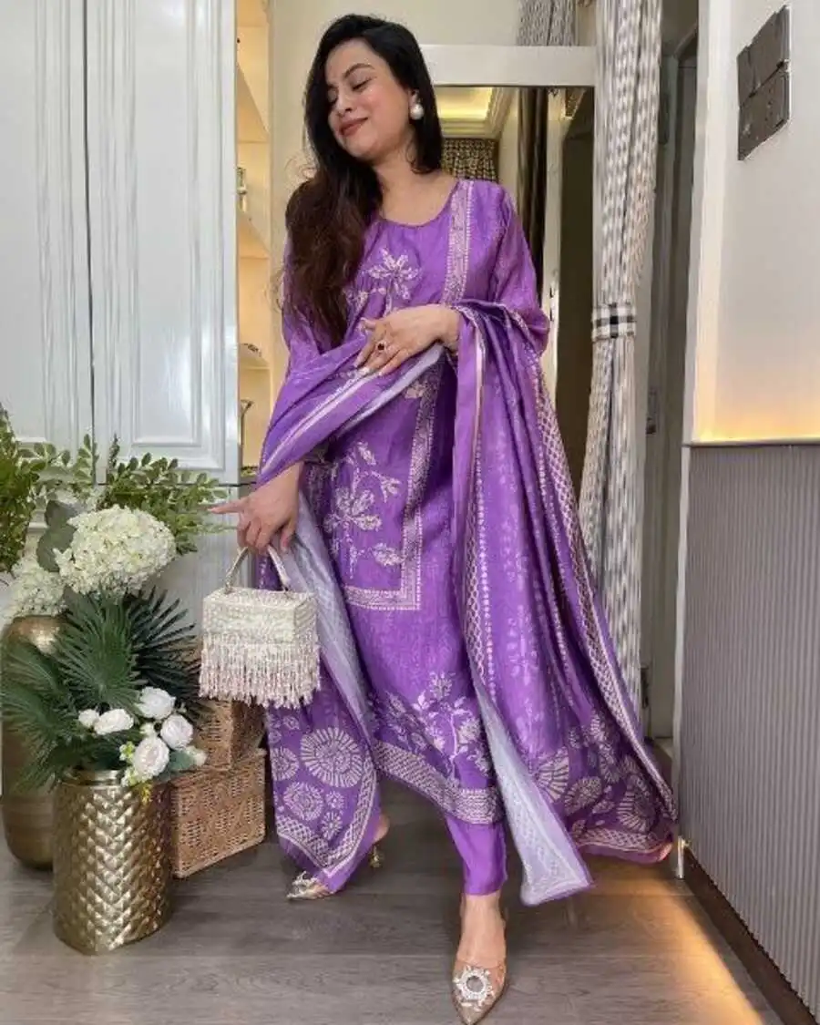 NEW ARRIVAL RAYON DIGITAL PRINT WORK TOP BOTTOM WITH DUPATTA LAVENDER
