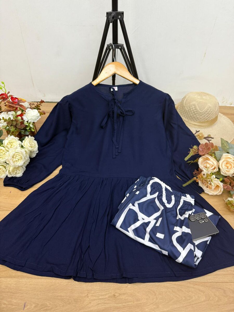 NEW ARRIVAL RAYON DIGITAL PRINT WORK TOP PALAZZO SET BLUE
