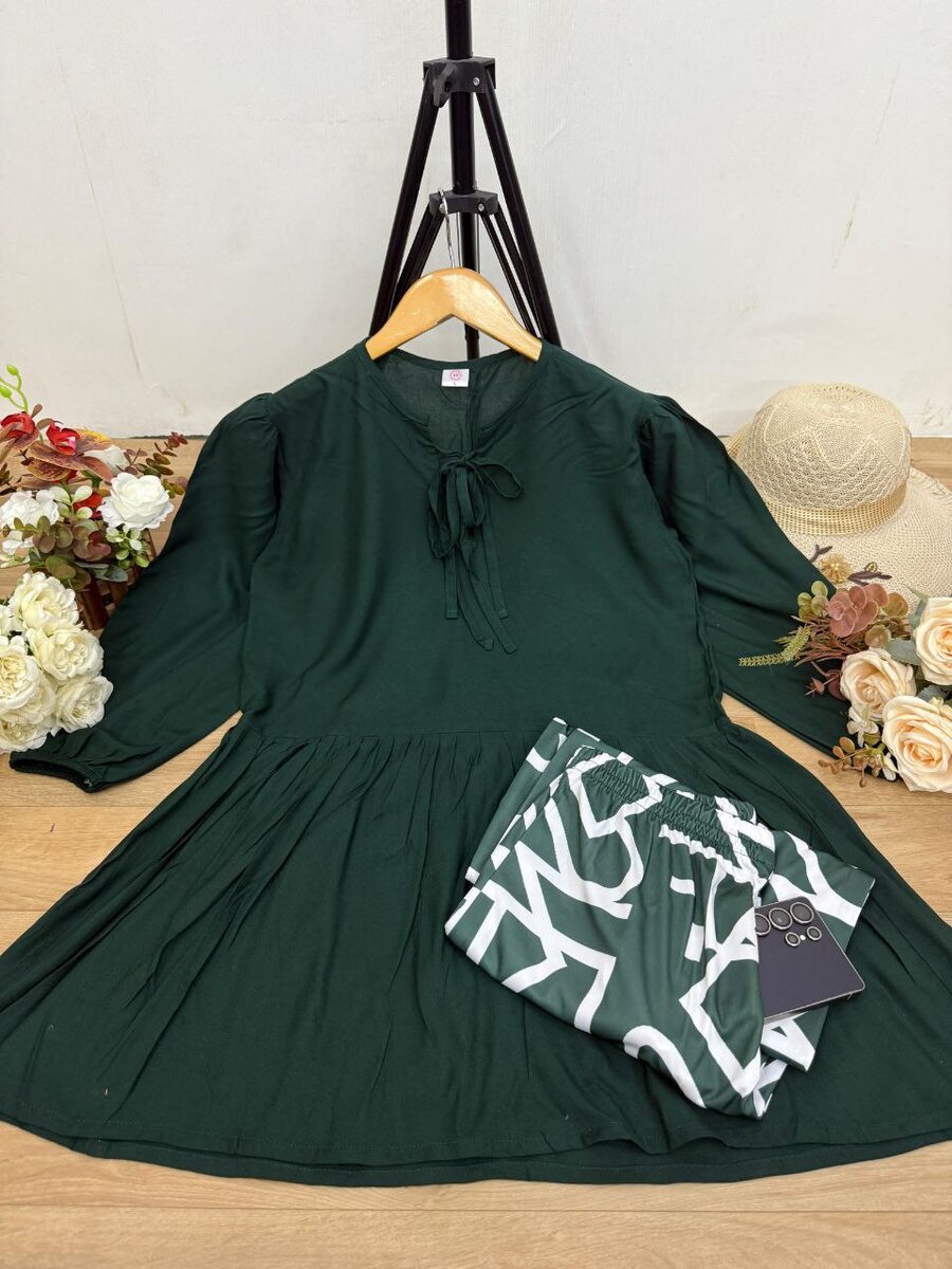 NEW ARRIVAL RAYON DIGITAL PRINT WORK TOP PALAZZO SET GREEN