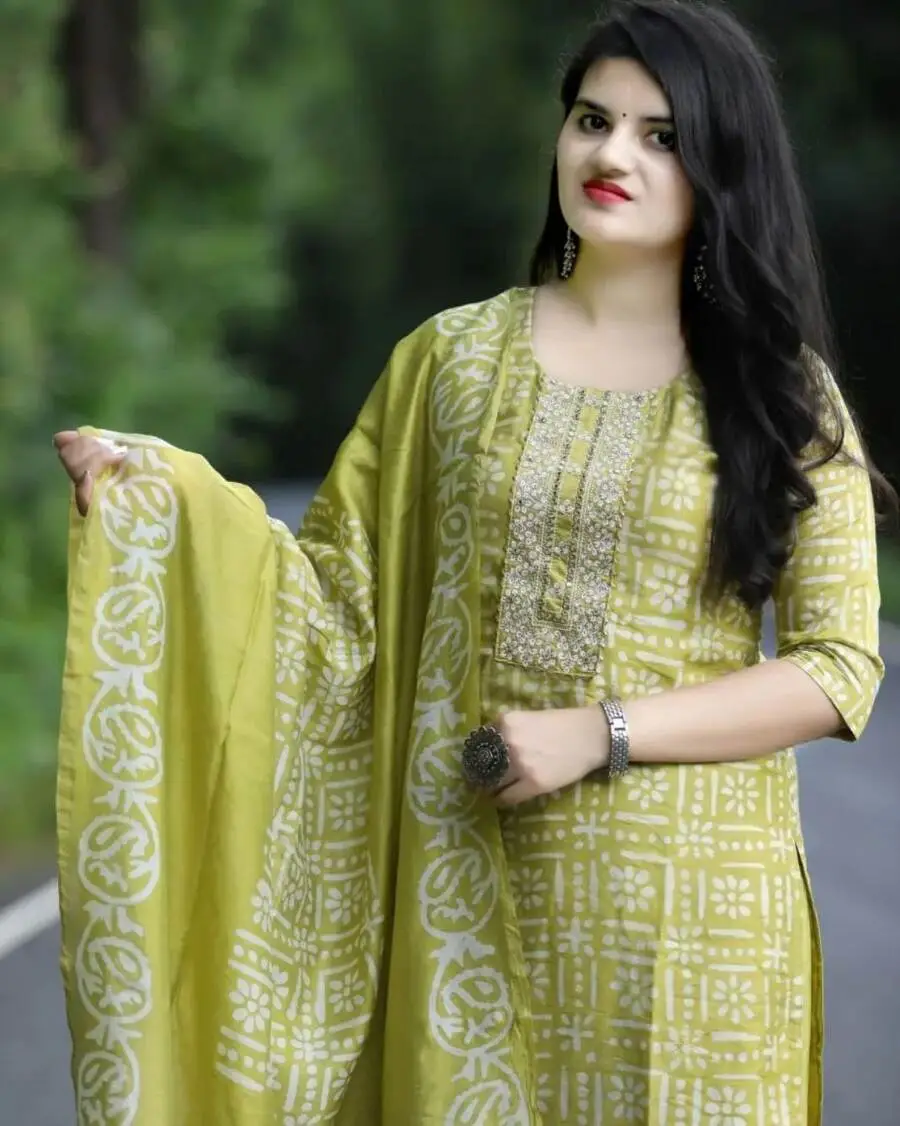 NEW ARRIVAL RAYON DIGITAL PRINTED WORK TOP BOTTOM WITH DUPATTA GREEN