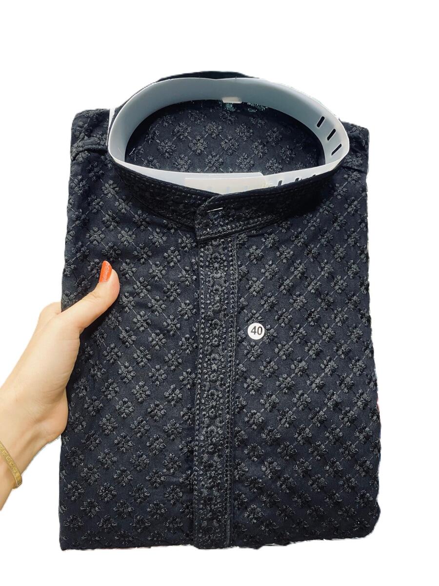 NEW ARRIVAL RAYON EMBROIDERY WORK MEN’S KURTA PAYJAMA BLACK