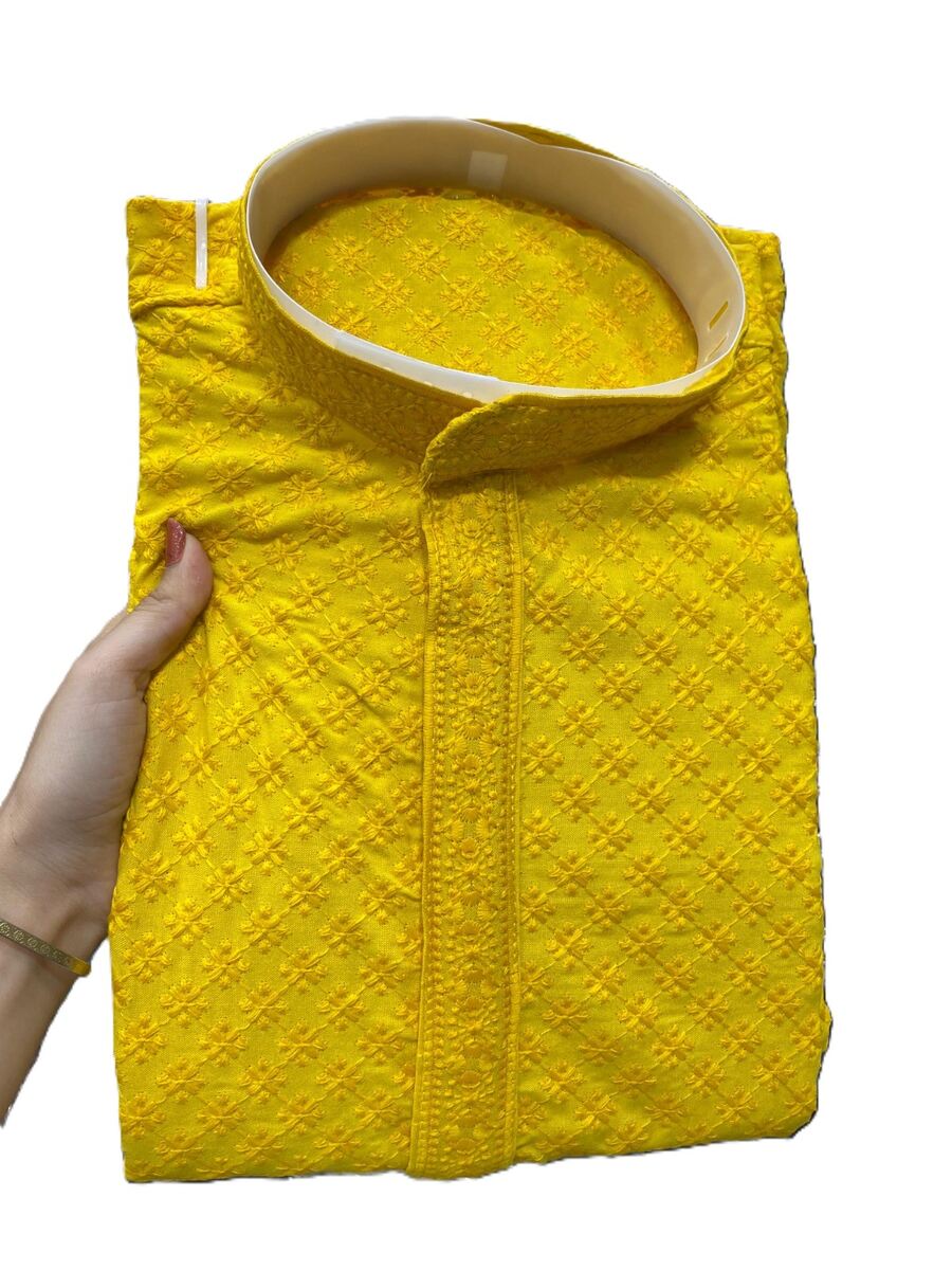 NEW ARRIVAL RAYON EMBROIDERY WORK MEN’S KURTA PAYJAMA YELLOW
