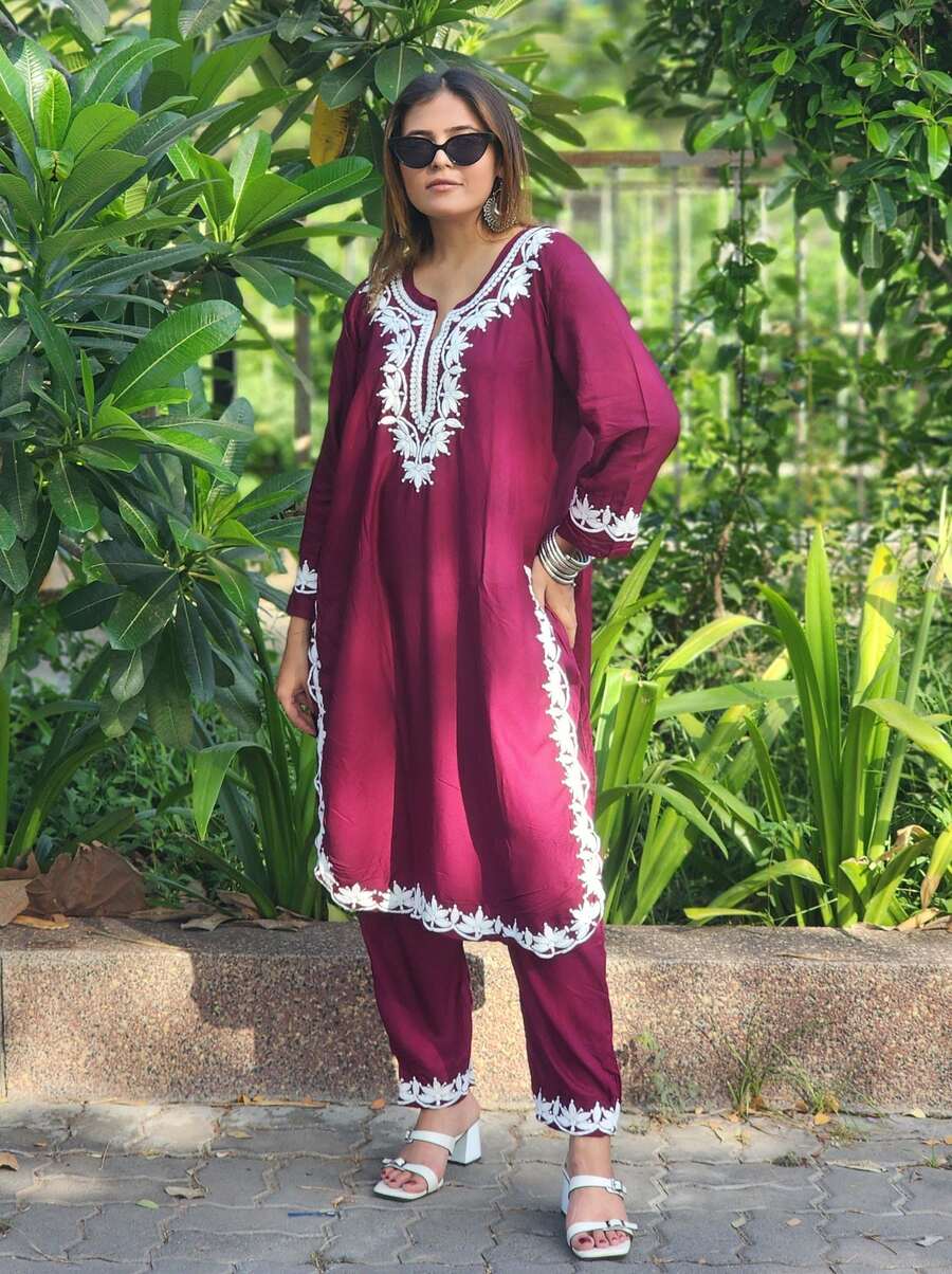 NEW ARRIVAL RAYON EMBROIDERY WORK TOP BOTTOM SET WINE
