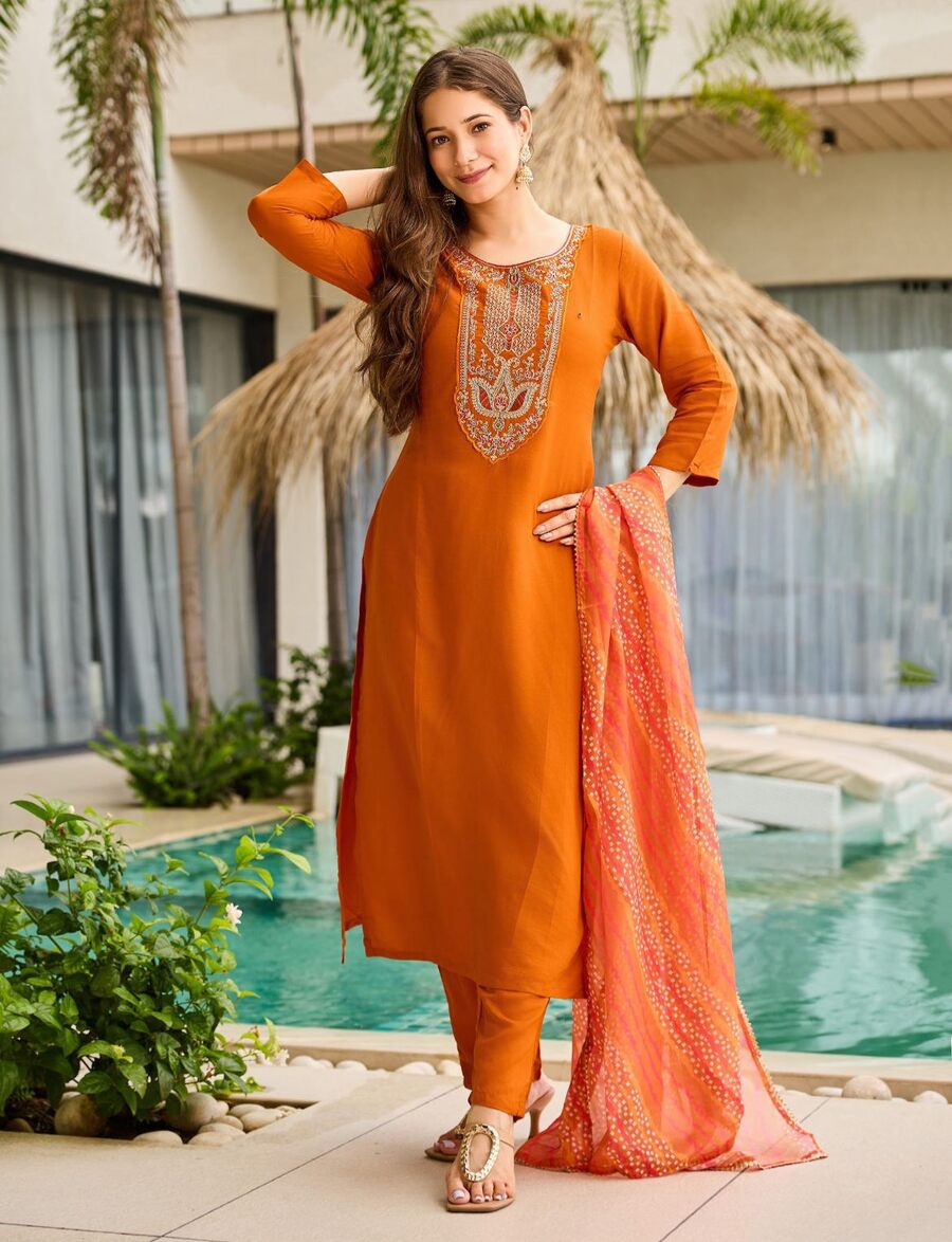 NEW ARRIVAL RAYON EMBROIDERY WORK TOP BOTTOM WITH DUPATTA ORANGE