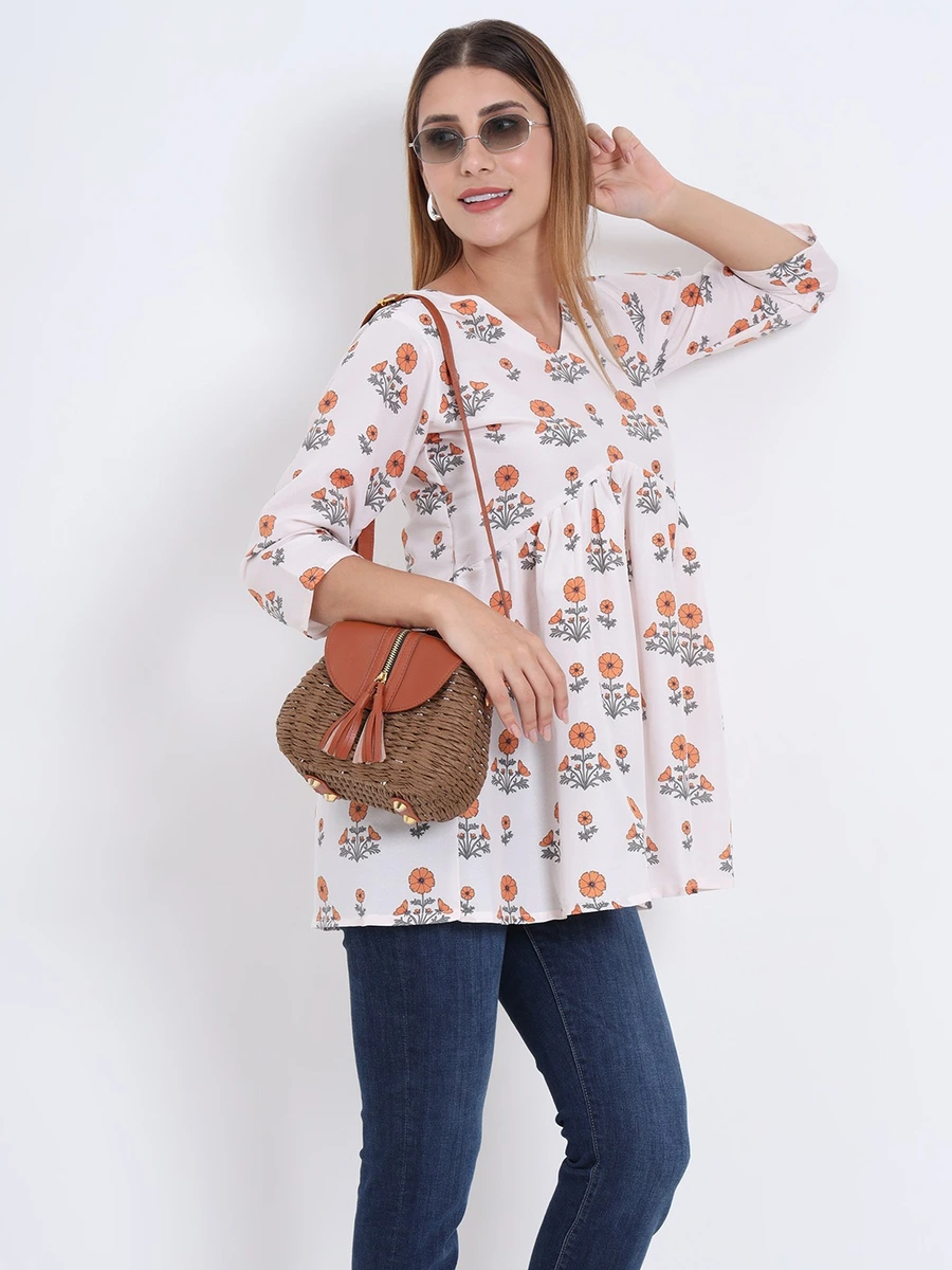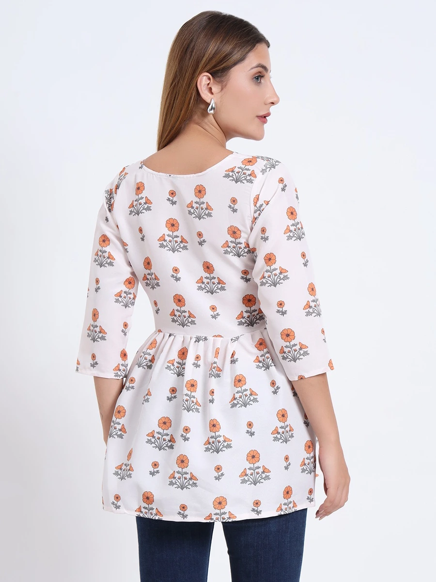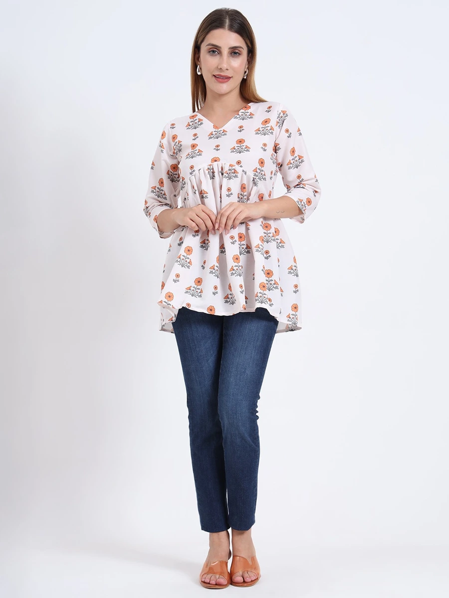 NEW ARRIVAL RAYON FLORAL PRINT WORK ONLY TOP CREAM