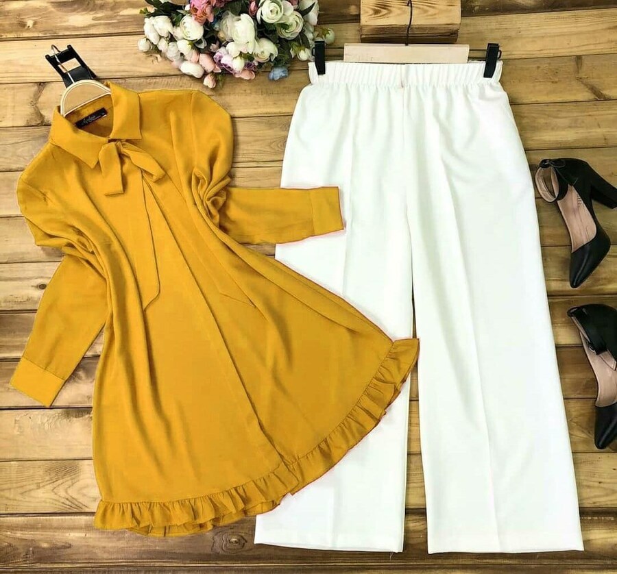 NEW ARRIVAL RAYON PLAIN TOP PALAZZO YELLOW