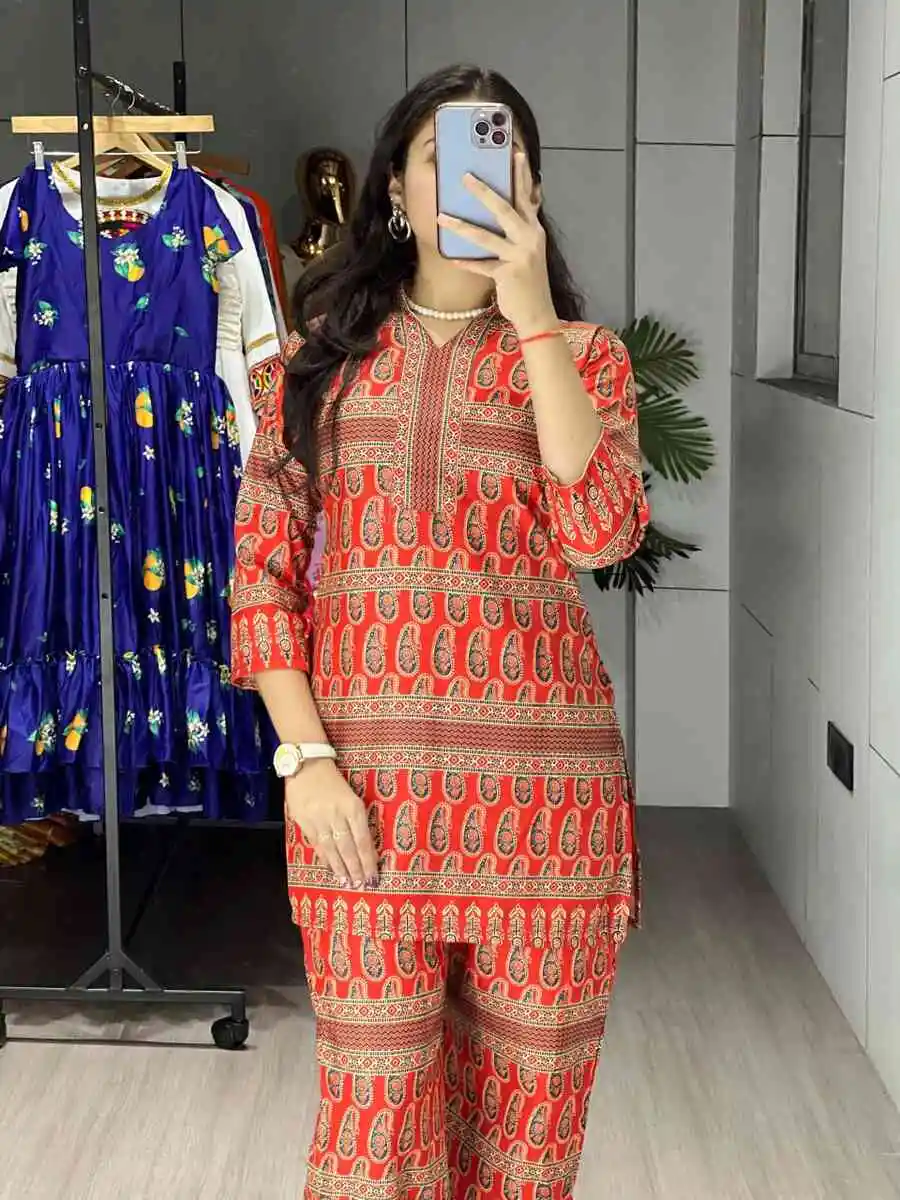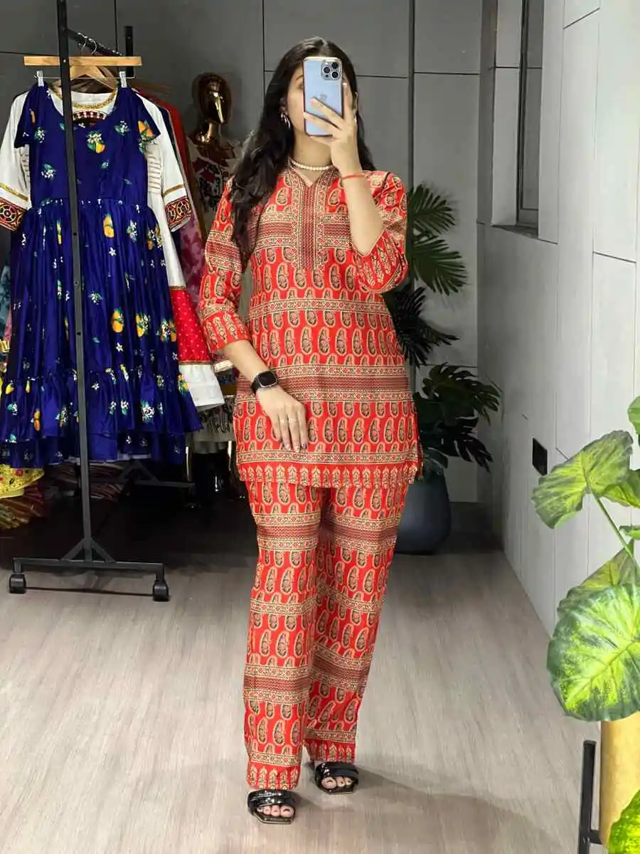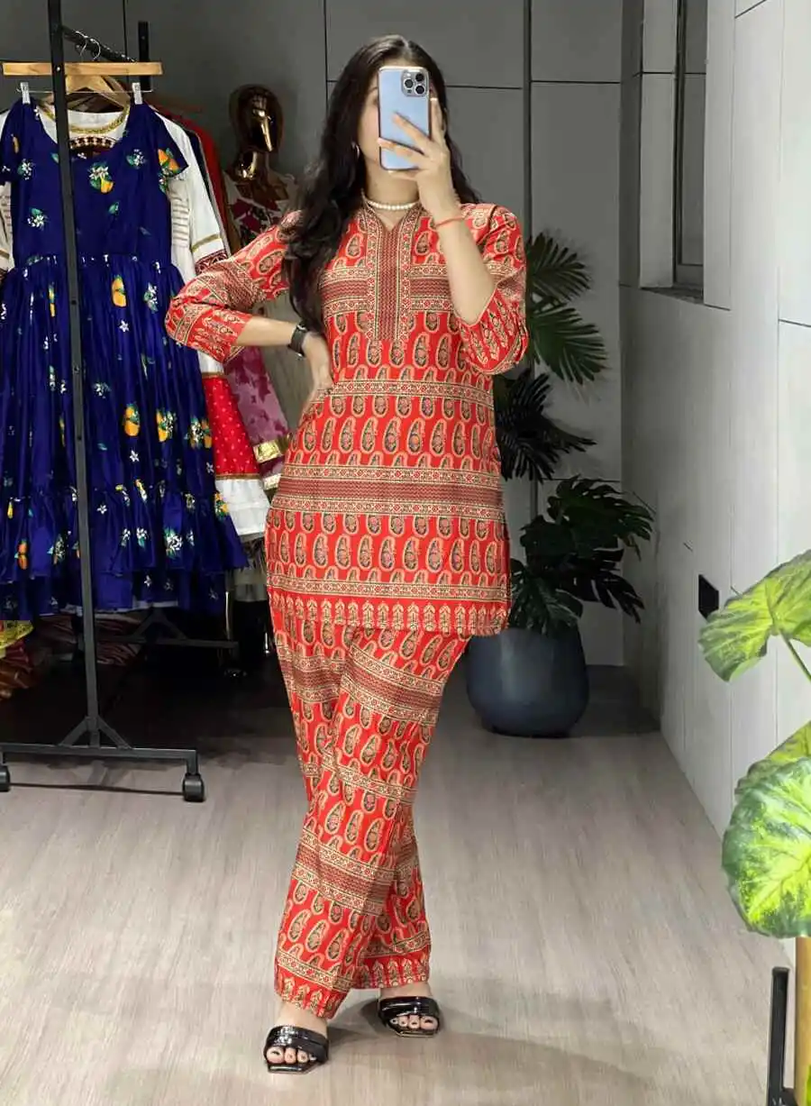 NEW ARRIVAL RAYON PRINTED CO-ORD SET ORANGE