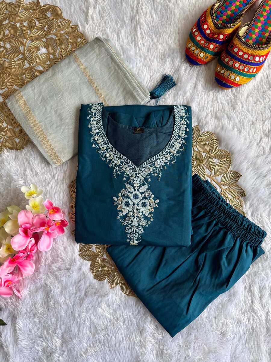 NEW ARRIVAL ROMAN SILK EMBROIDERY WITH SEQUENCE WORK TOP BOTTOM WITH DUPATTA TEAL