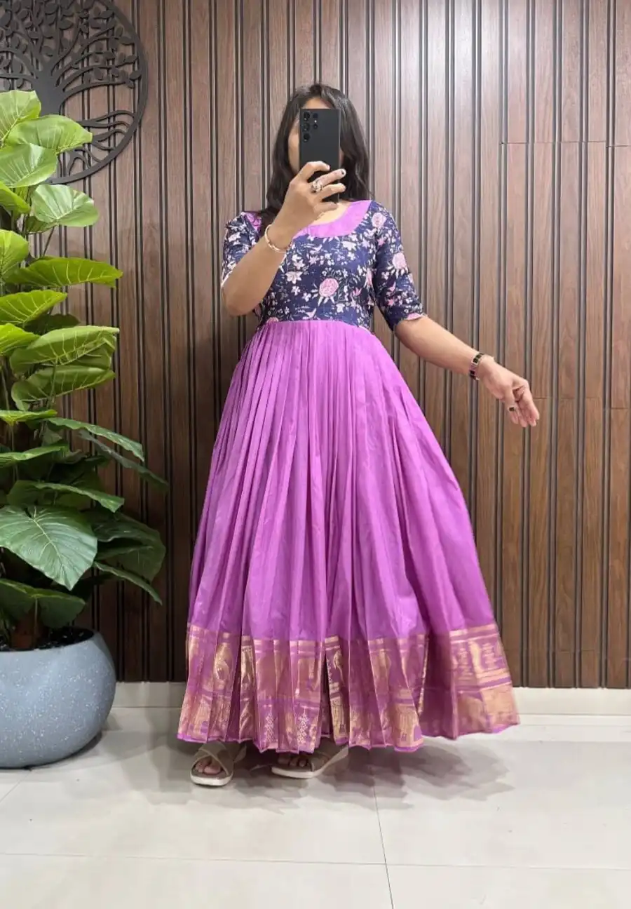 NEW ARRIVAL SILK ZARI WEAVING BORDER WORK GOWN PURPLE